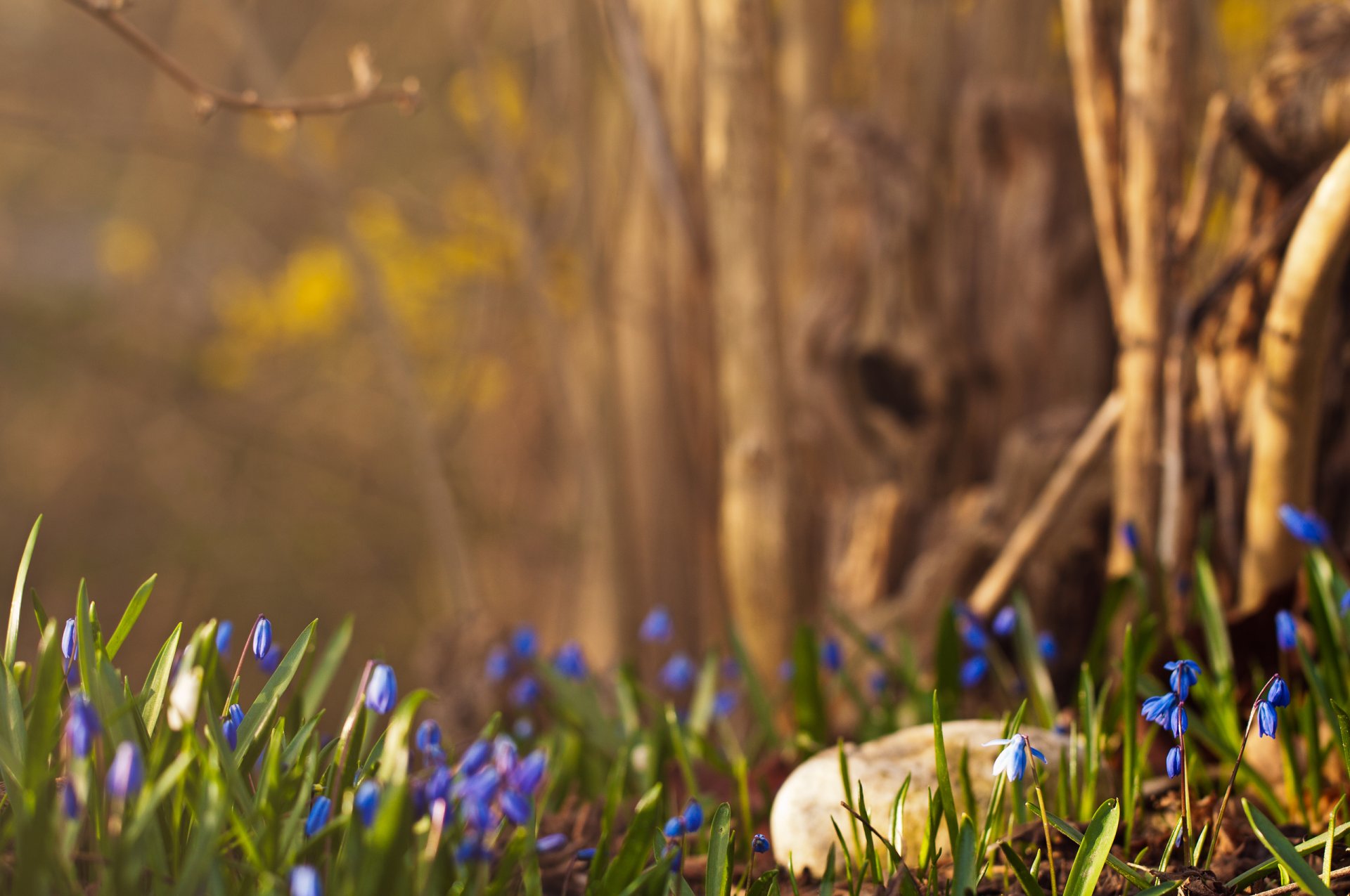Au printemps dans la forêt de perce-neige bleu - fond d'écran de téléphone