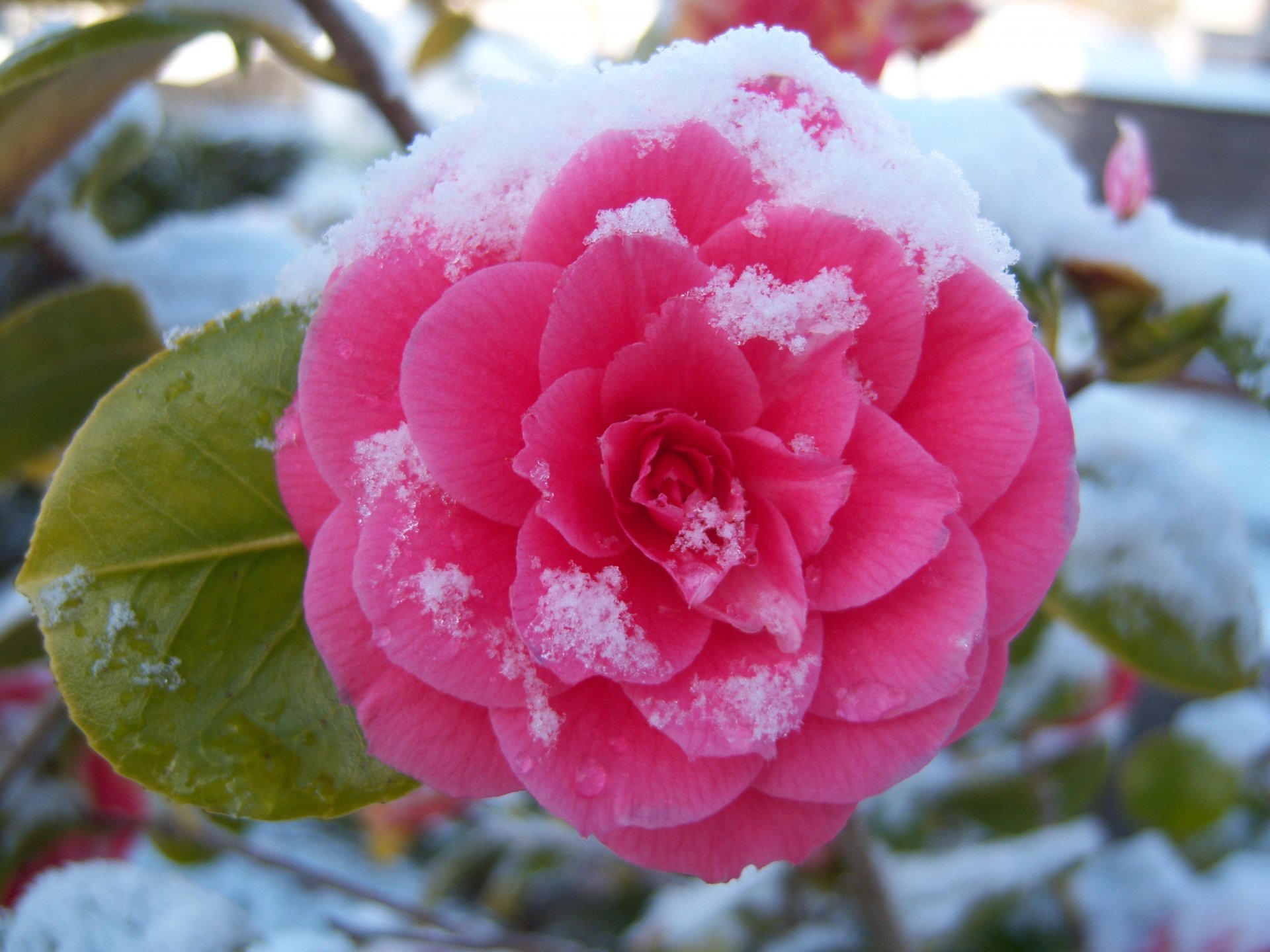 Tags:fleur, camélia, coulée, neige