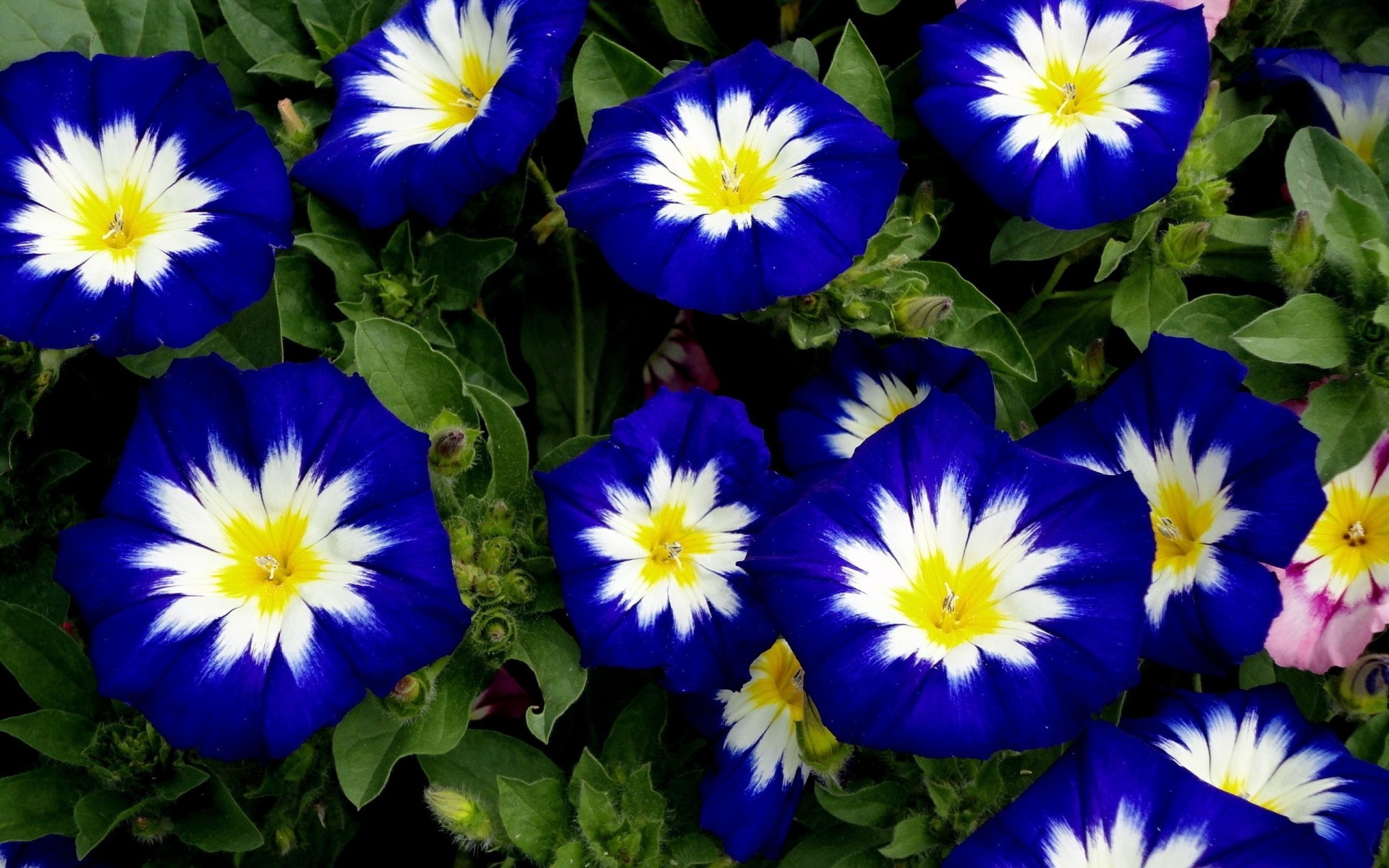 Fleurs bleu avec bouquet blanc - fond d'écran de téléphone