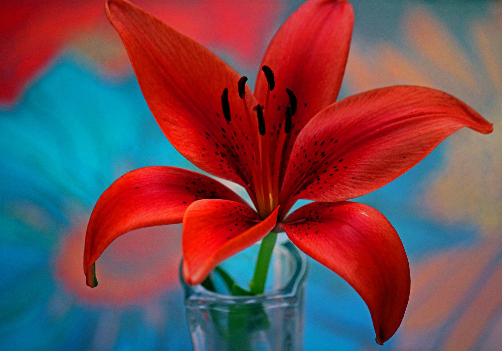 Pétales de lys rouge avec étamines - fond d'écran de téléphone