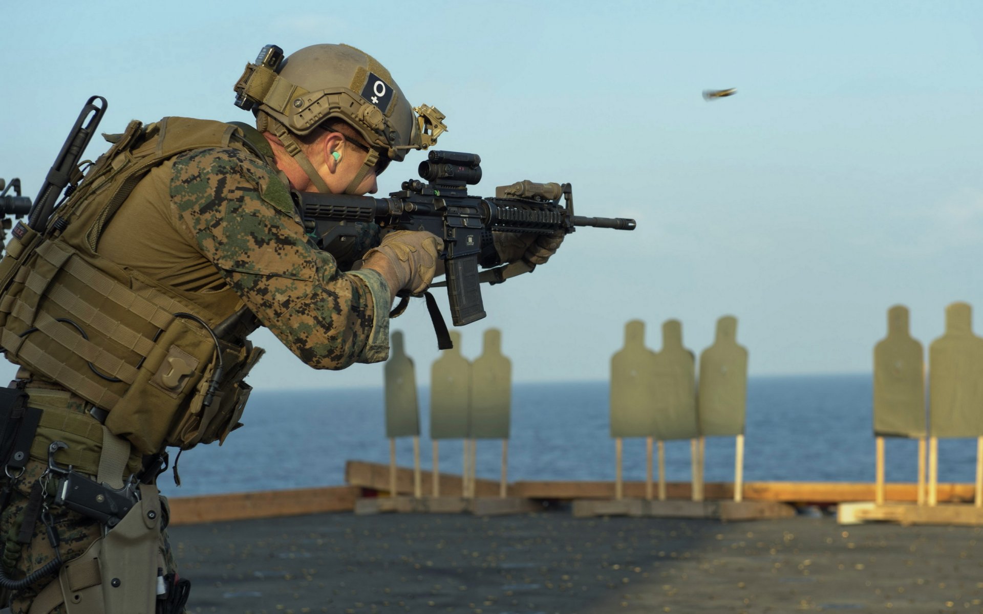 Soldat en tenue militaire avec armes - fond d'écran de bureau