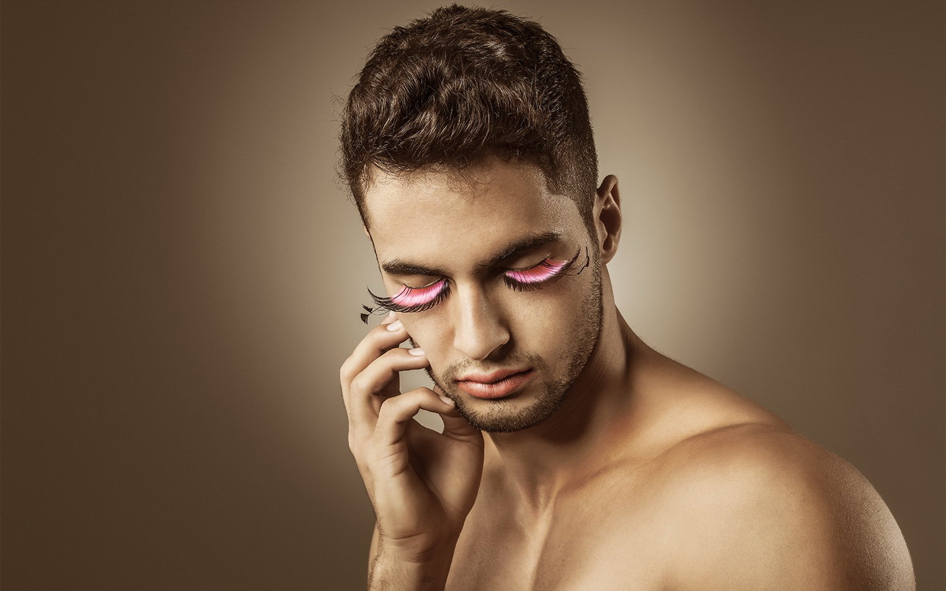 Beau mec posant sur fond avec des cils - fond d'écran de téléphone
