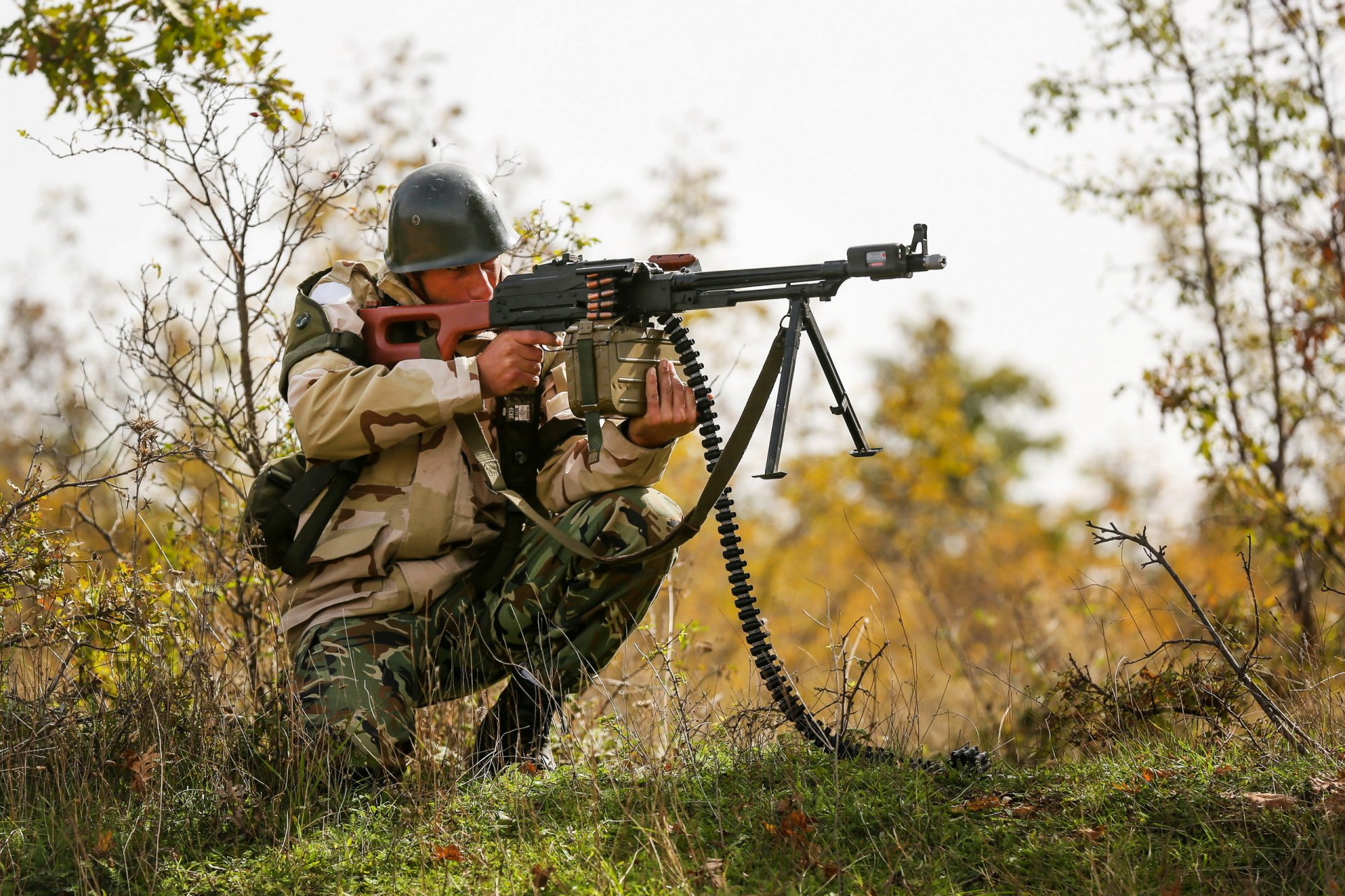 Soldat bulgare assis avec des armes - fond d'écran de téléphone