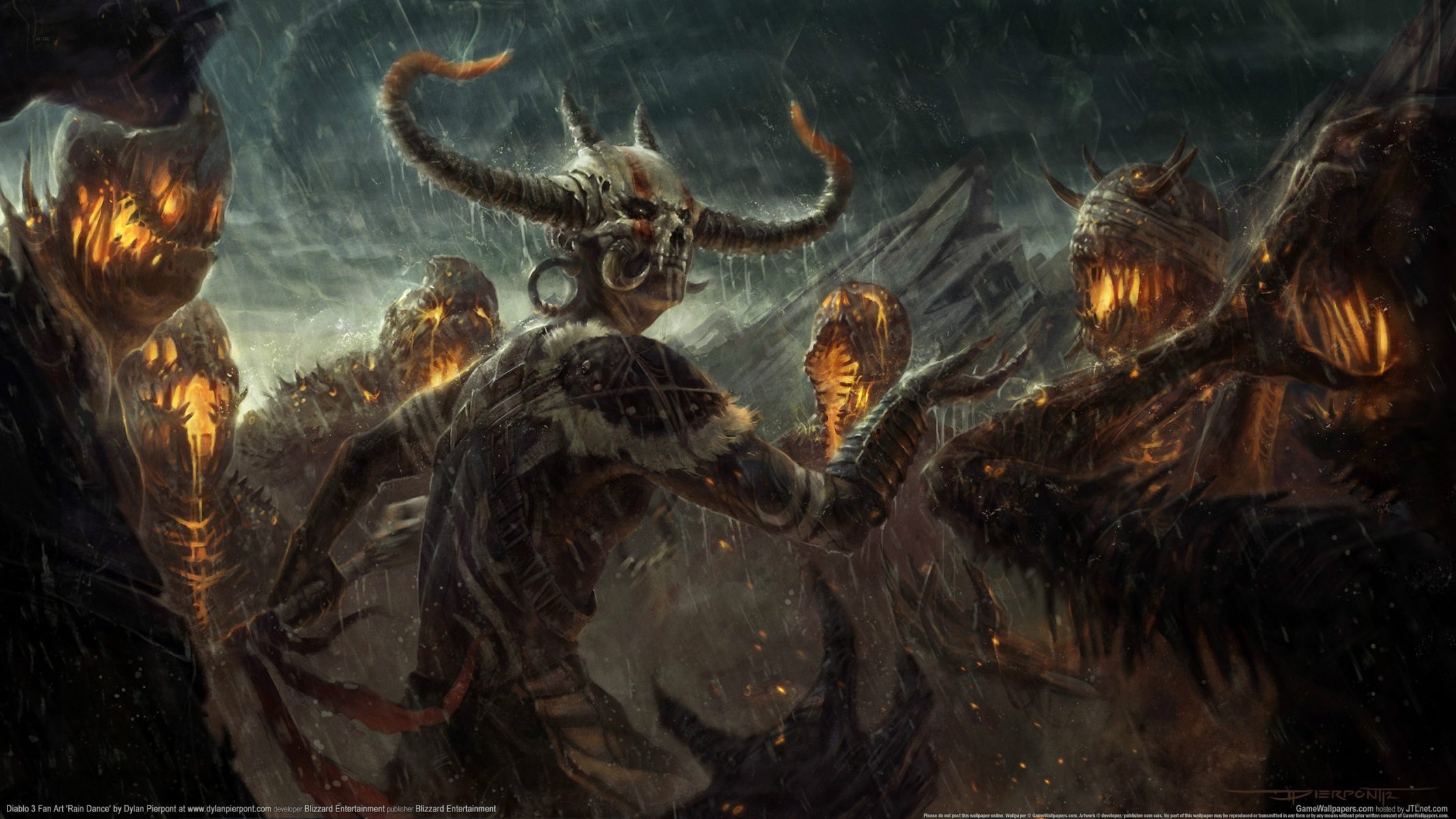 Sorcier avec des démons sous la pluie de Diablo - fond d'écran de bureau