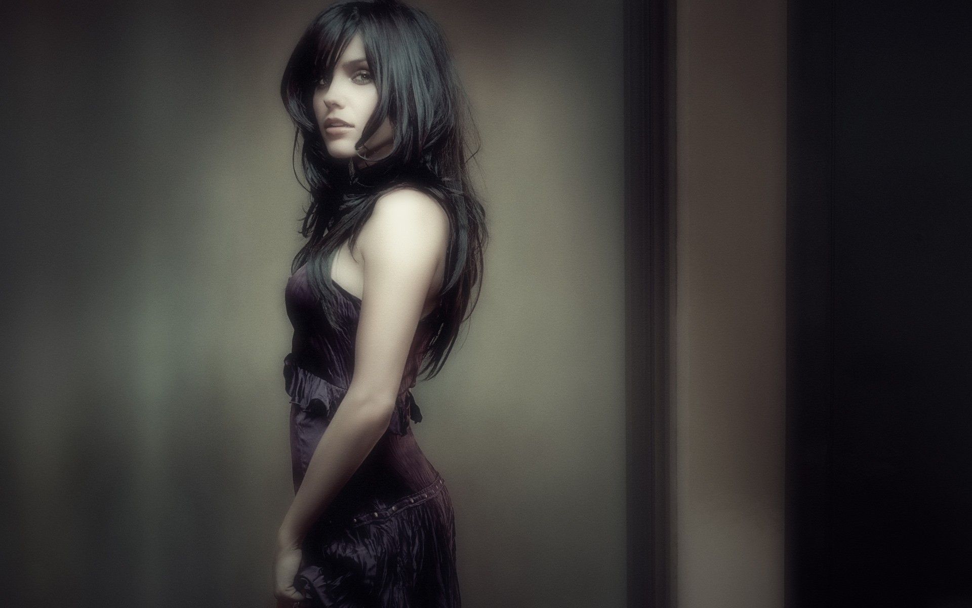 Belle brune sur fond de brouillard - fond d'écran de bureau