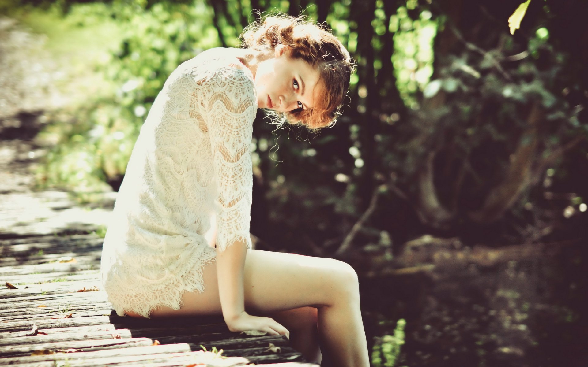 Belle fille au repos sur le pont - fond d'écran de bureau