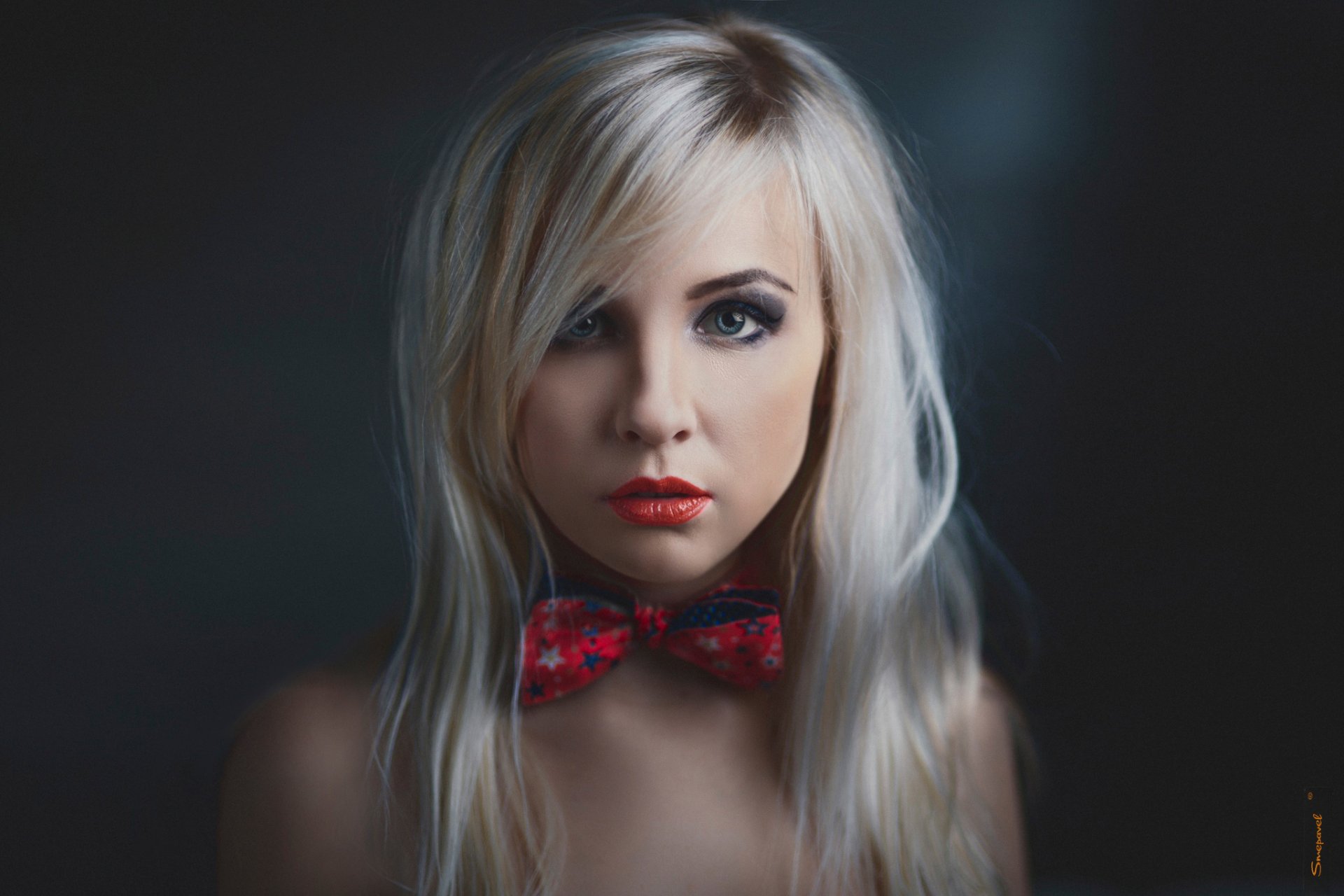 Belle fille avec un arc rouge - fond d'écran de bureau