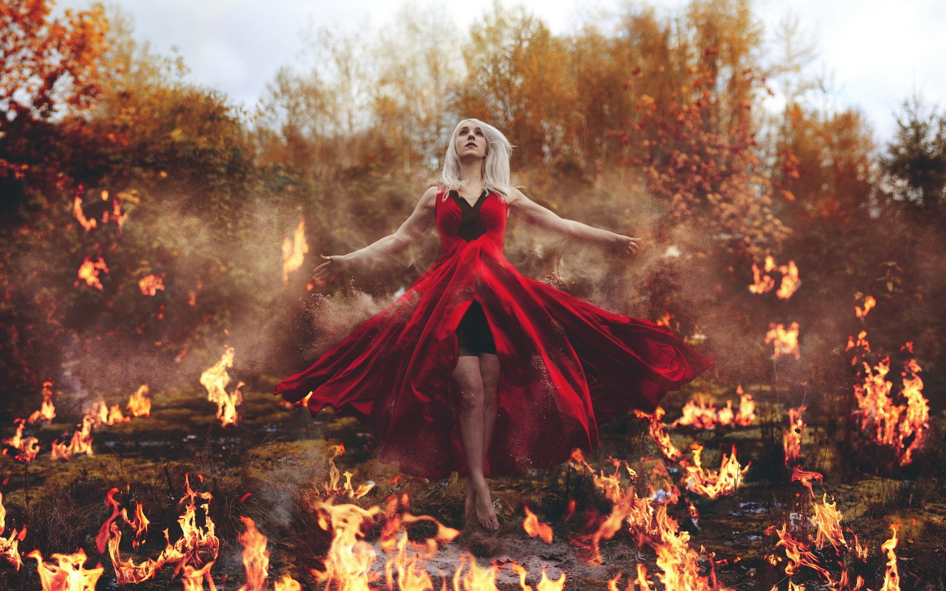 Fille sur fond de champ brûlant - fond d'écran de bureau