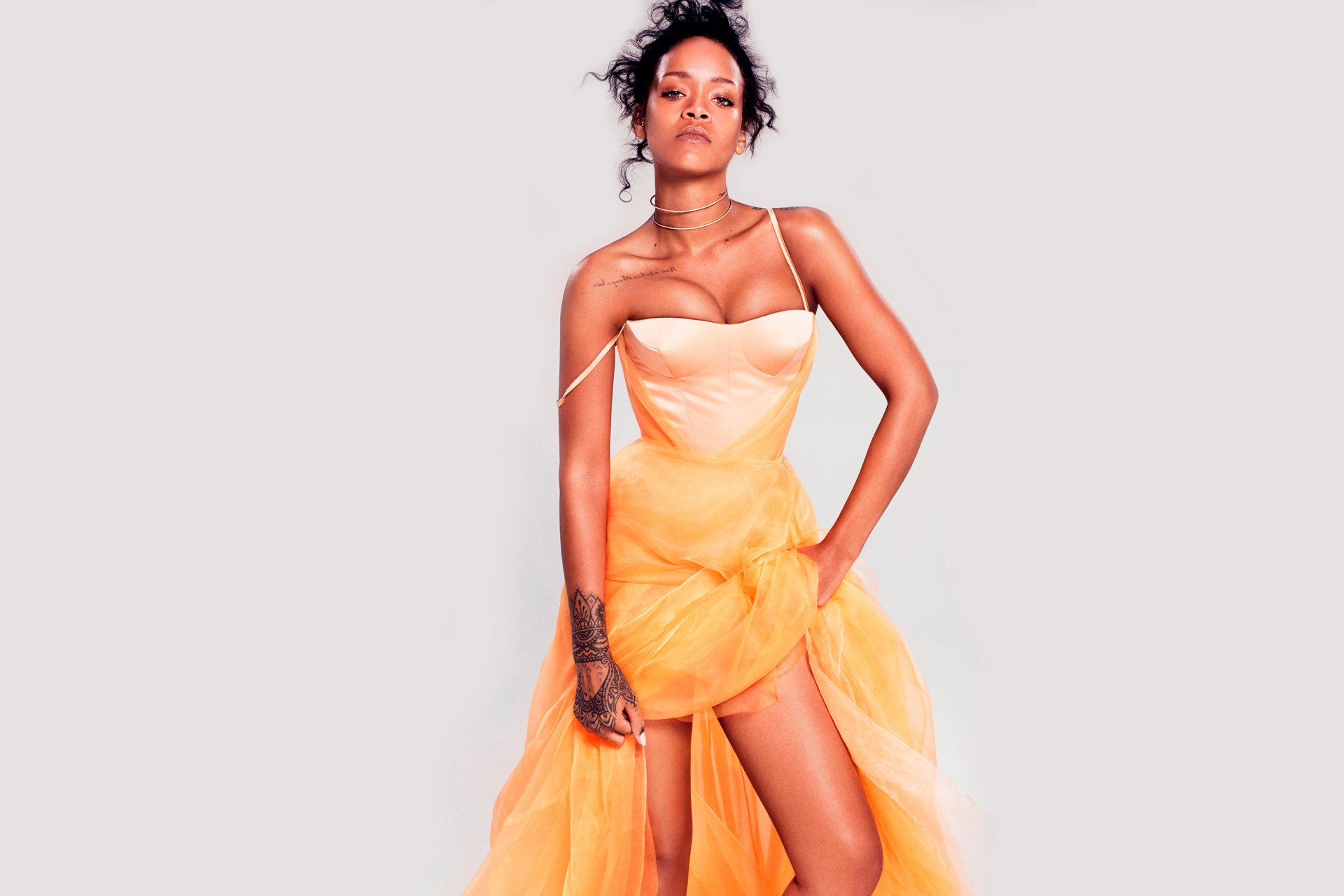 Photo de la chanteuse Rihanna en robe jaune - fond d'écran de bureau