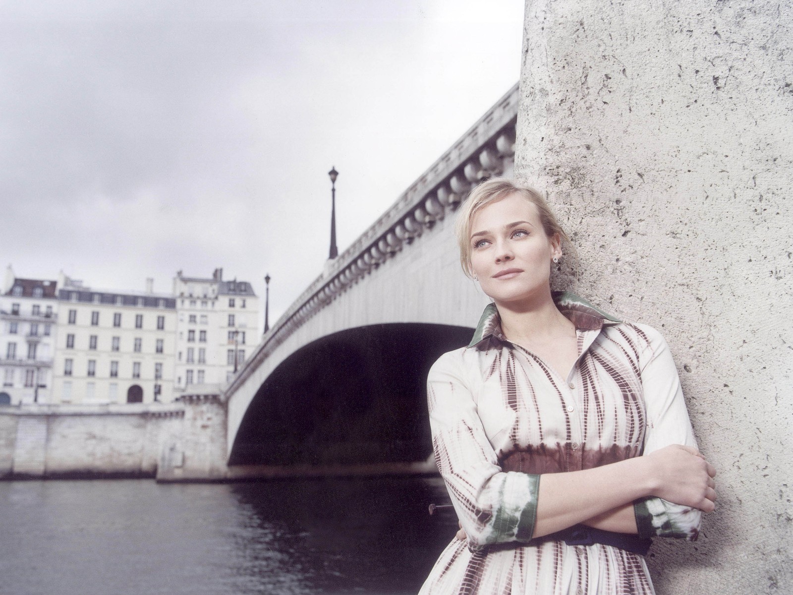 Fille sur fond de rivière - fond d'écran de bureau