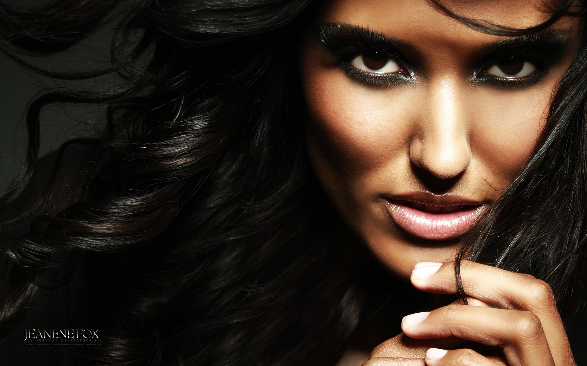 Brune aux yeux bruns. Regard de chat - fond d'écran de téléphone
