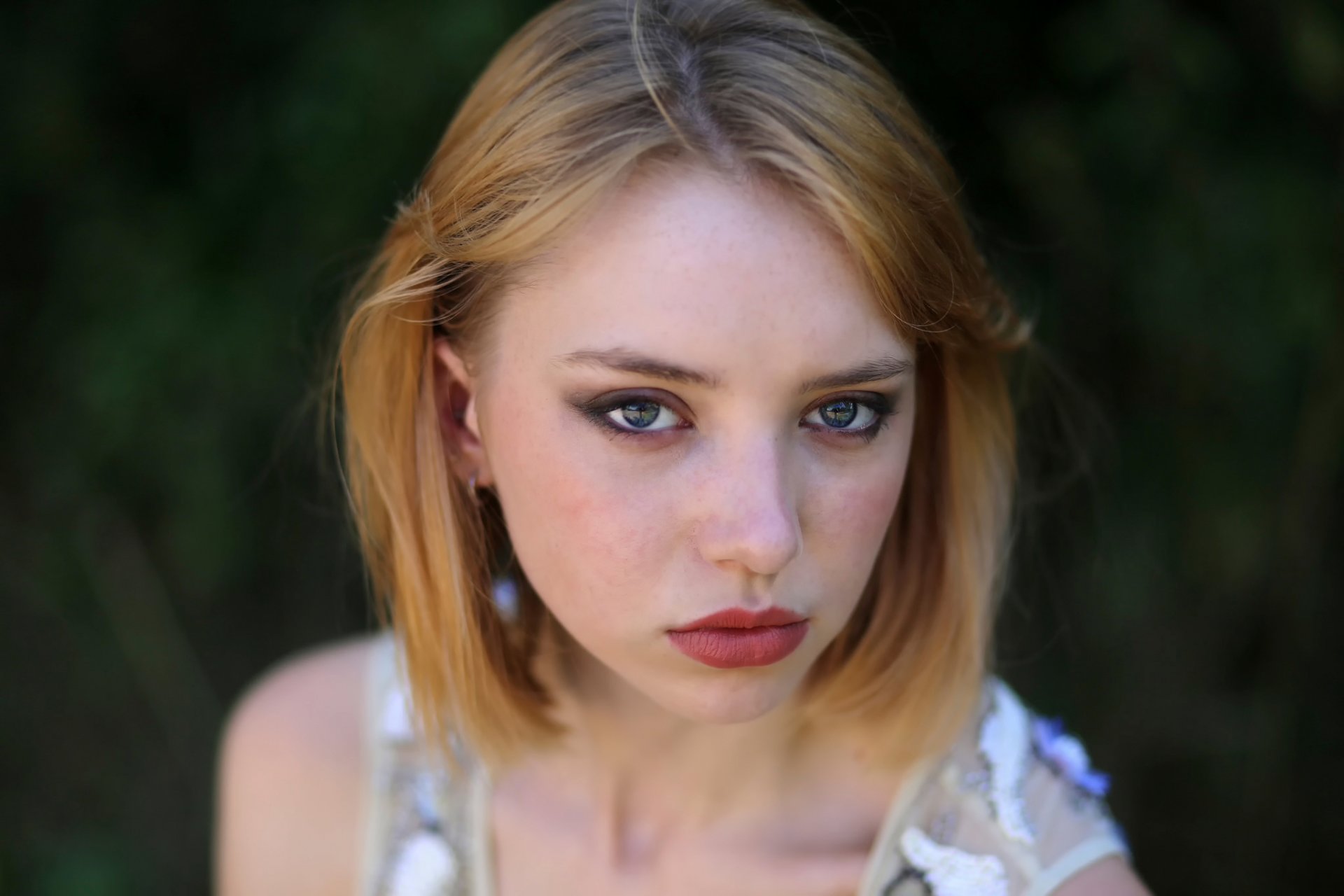 Fille avec des cheveux blonds visage close-up - fond d'écran de téléphone