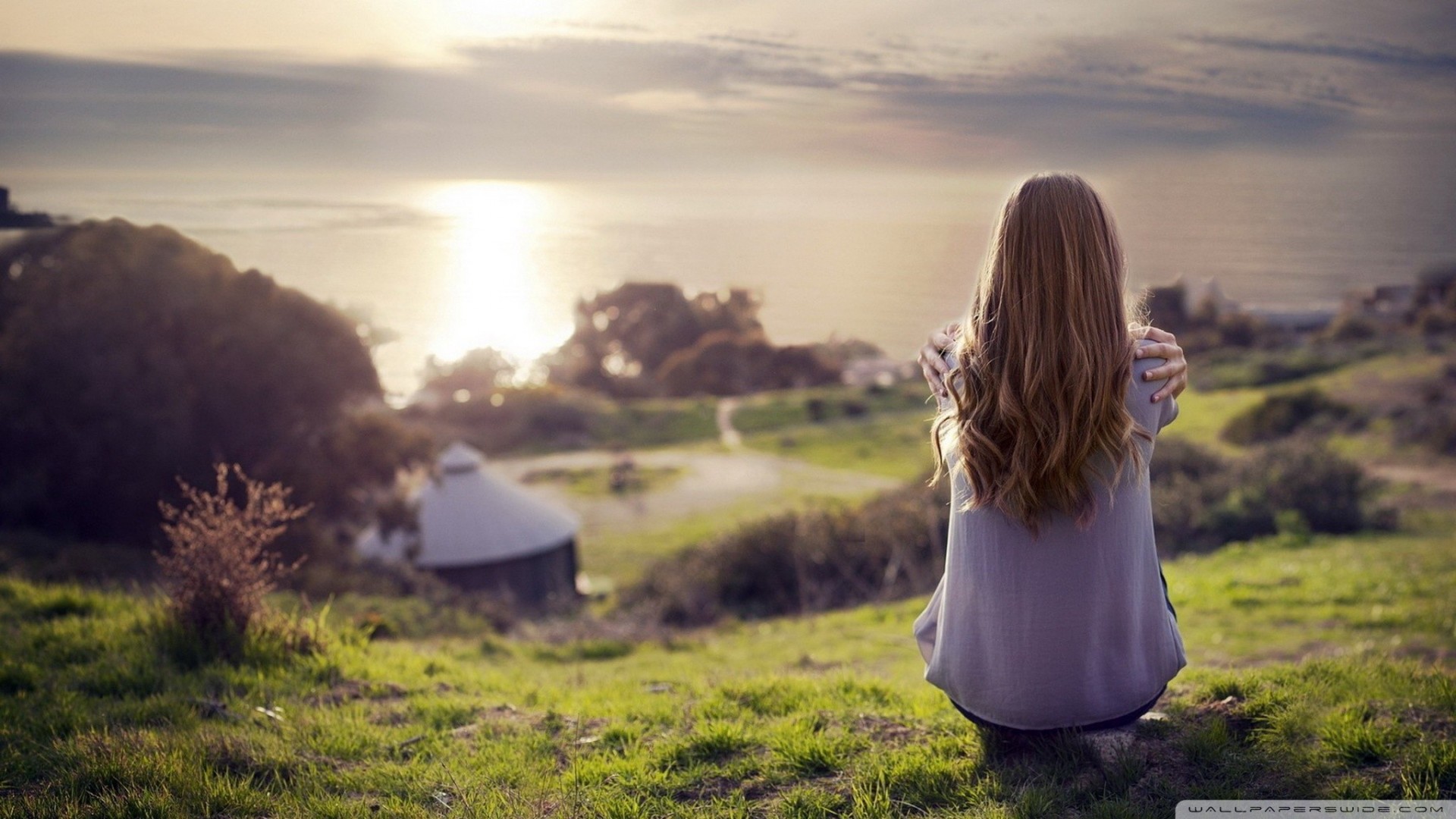 Fille de l arrière au coucher du soleil - fond d'écran de téléphone