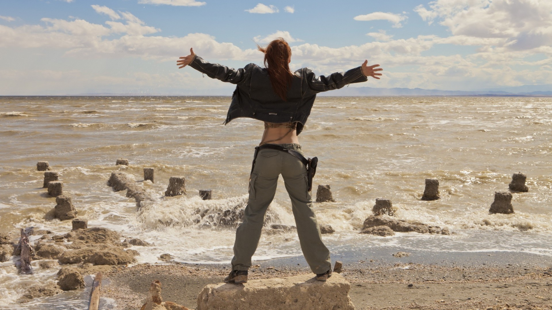 Photo de la jeune fille à l arrière près de la mer - fond d'écran de téléphone