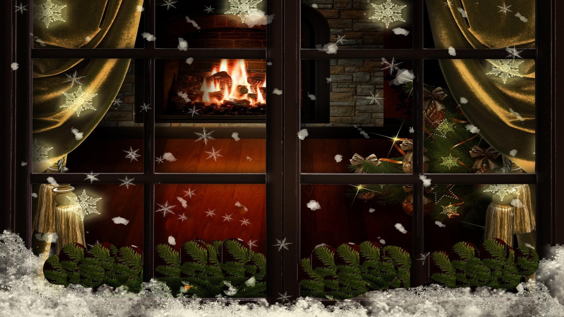 Tags:arbre de noël, fenêtre, flocons de neige, noël, cheminée