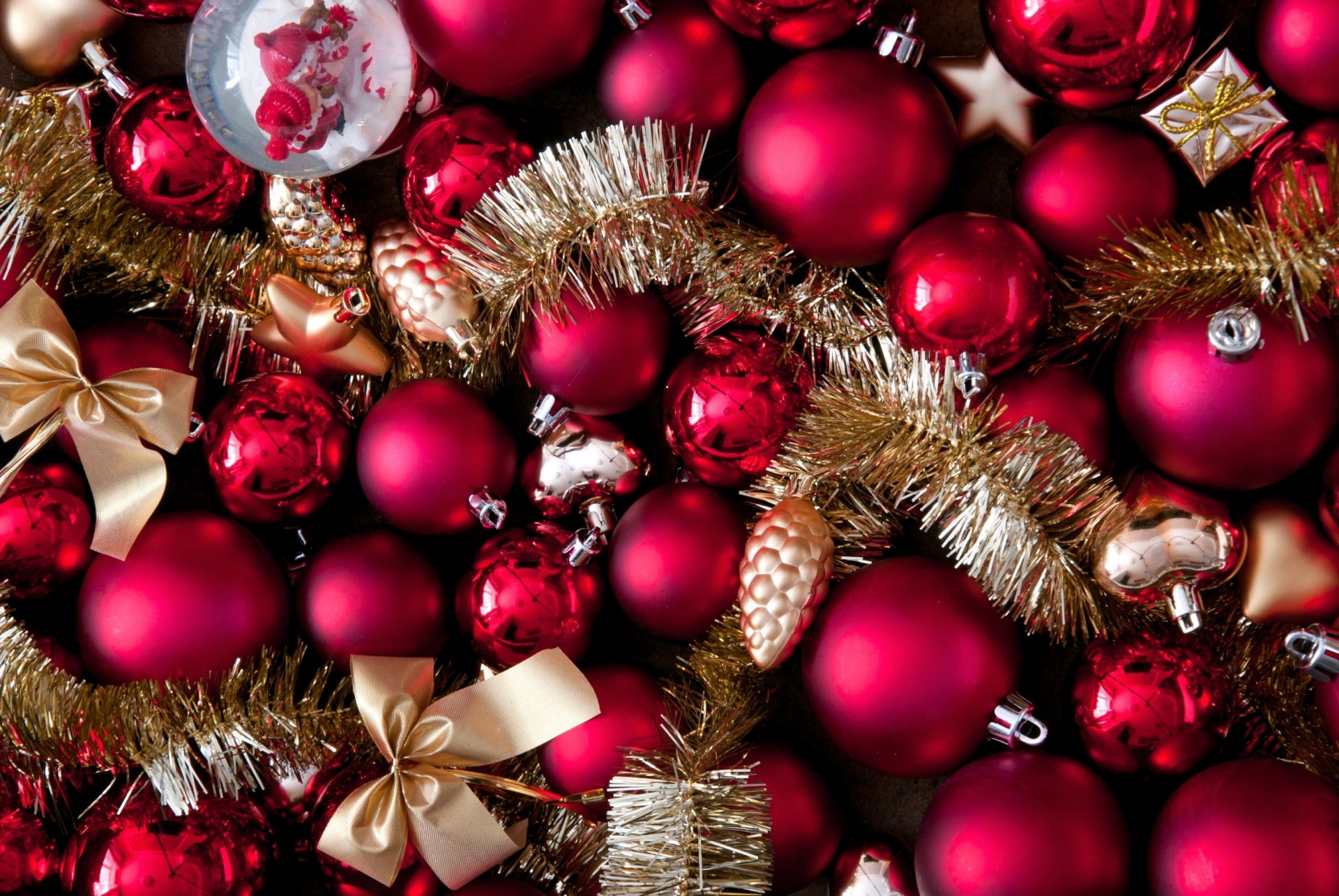 Décorations de Noël sur un arbre de Noël à partir d arcs et de boules - fond d'écran de bureau