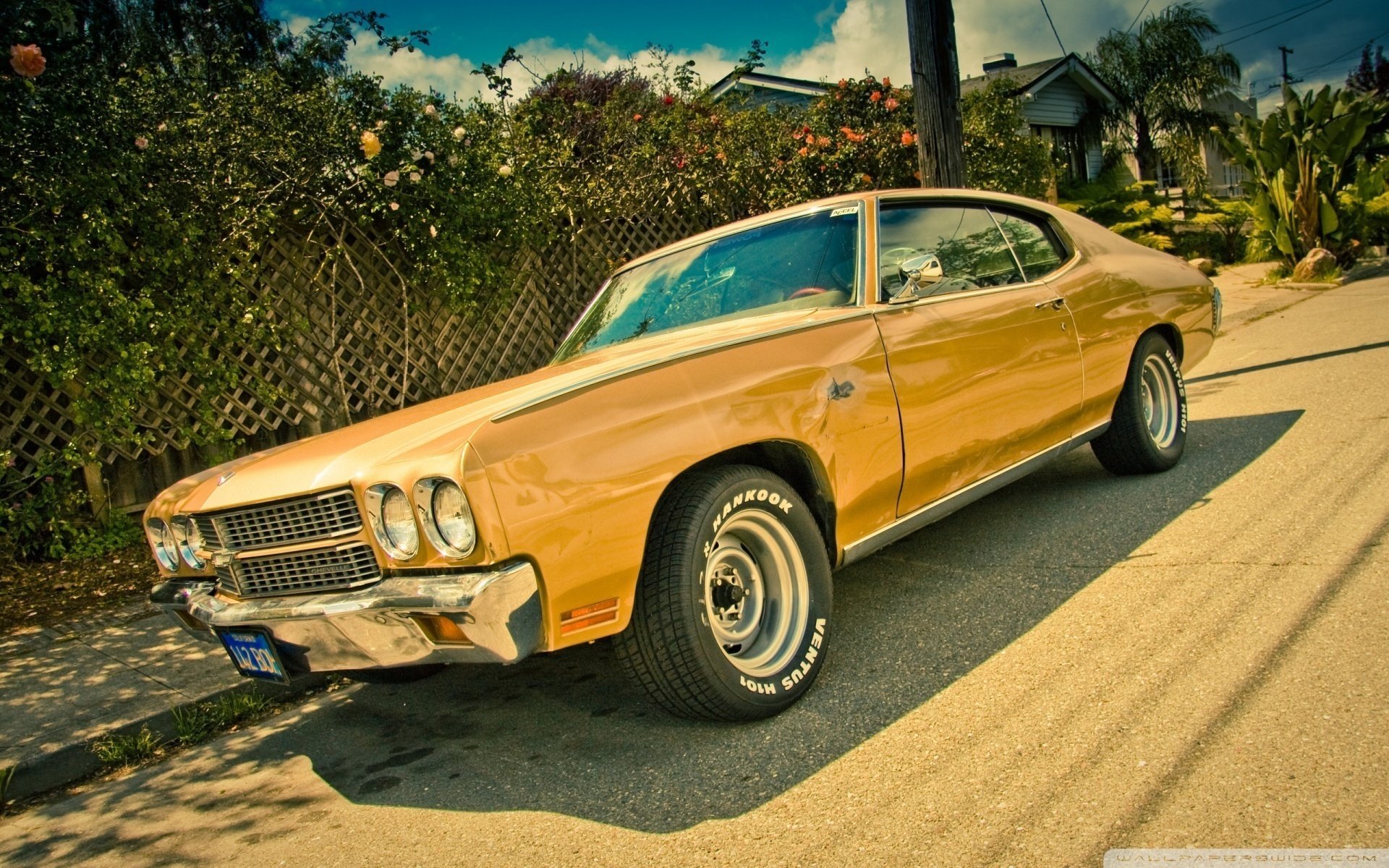 Chevrolet sur une route ensoleillée - fond d'écran de bureau
