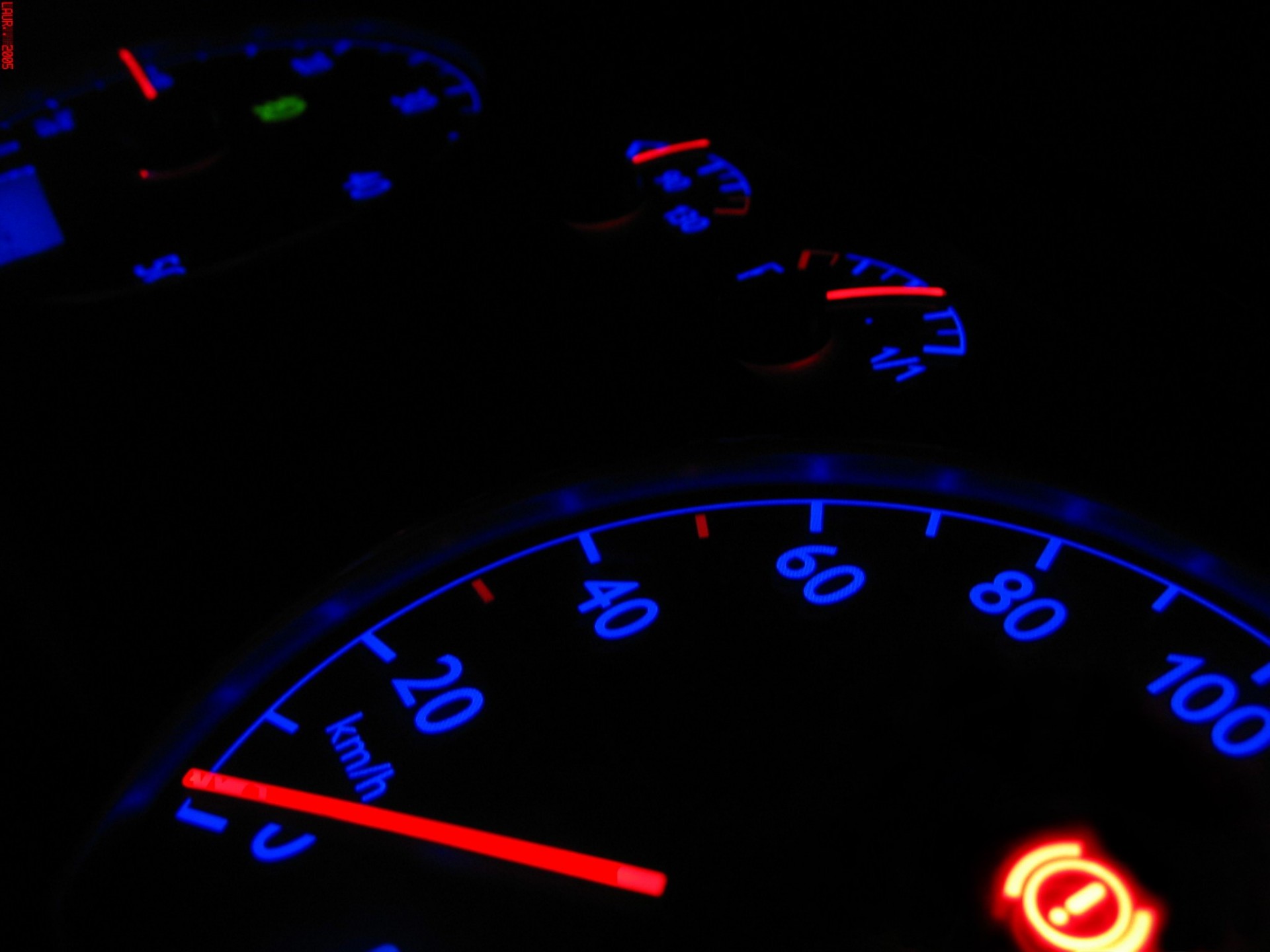 Compteur de vitesse avec rétro-éclairage sur le panneau de voiture - fond d'écran de bureau