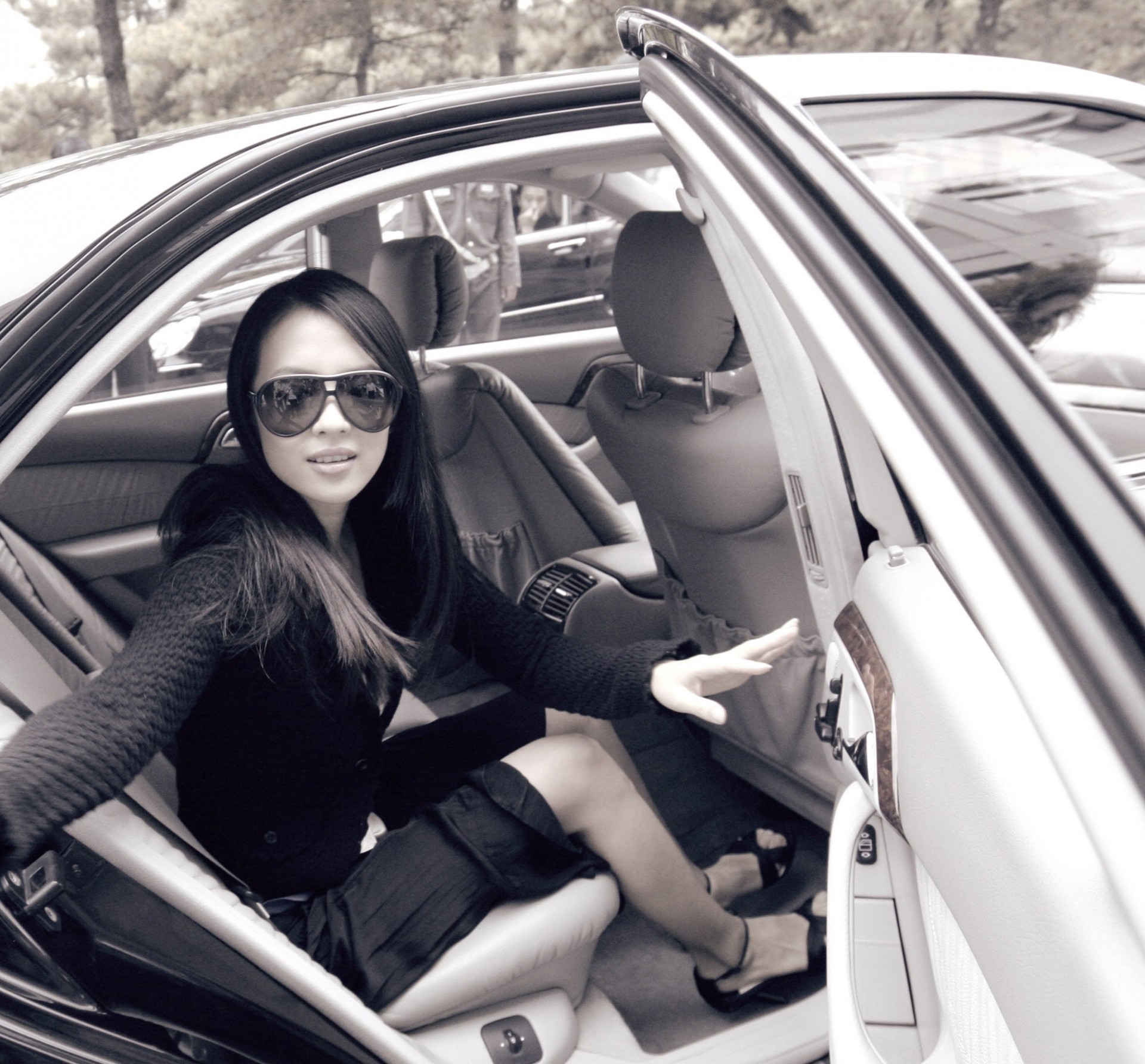 Fille assise sur la banquette arrière d une voiture - fond d'écran de bureau
