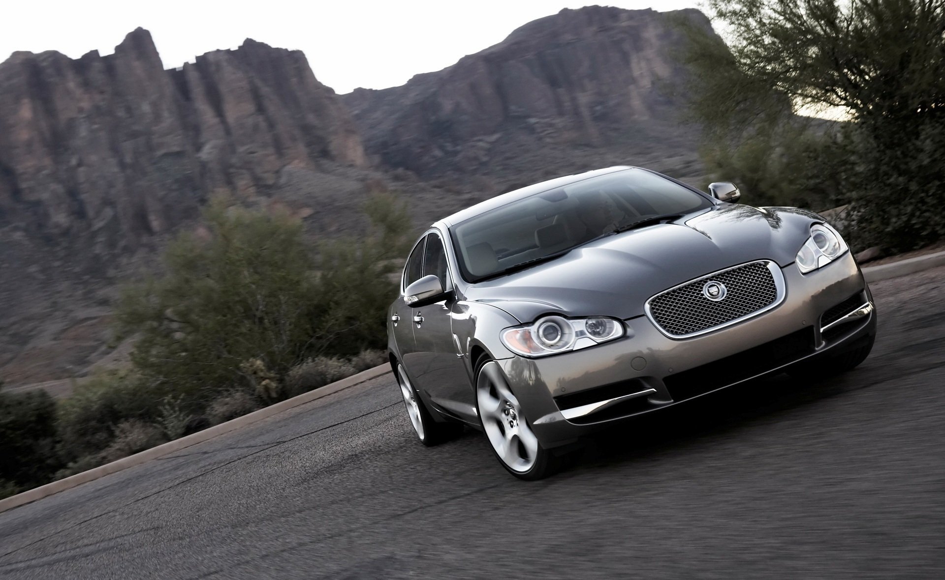 Image d une voiture gris jaguar sur fond de montagnes - fond d'écran de bureau