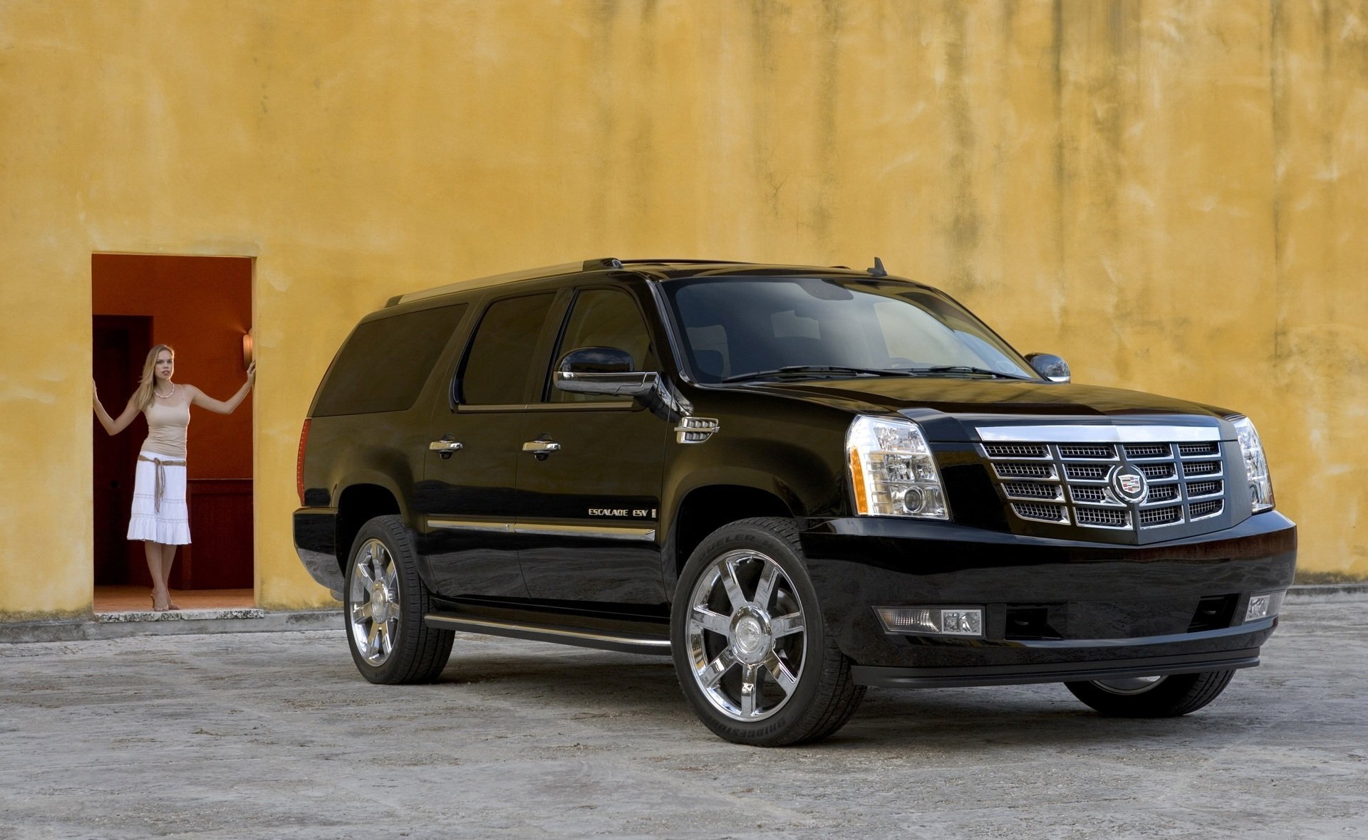 Jolie fille à la Cadillac noire - fond d'écran de bureau