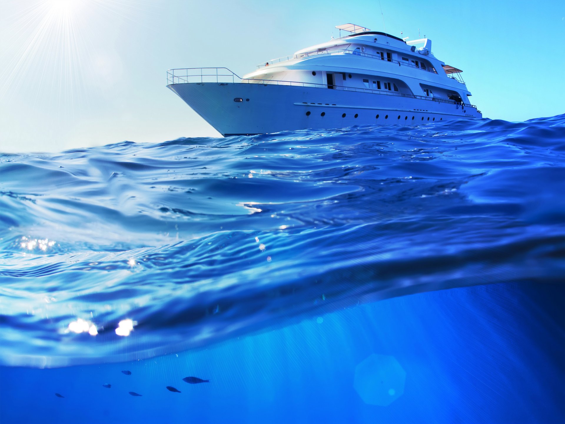 Le yacht navigue sur la mer bleue - fond d'écran de bureau