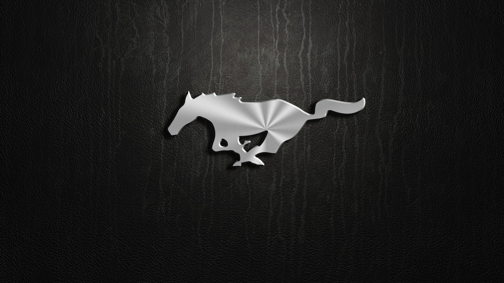 Logo Mustang argenté sur fond noir - fond d'écran de bureau