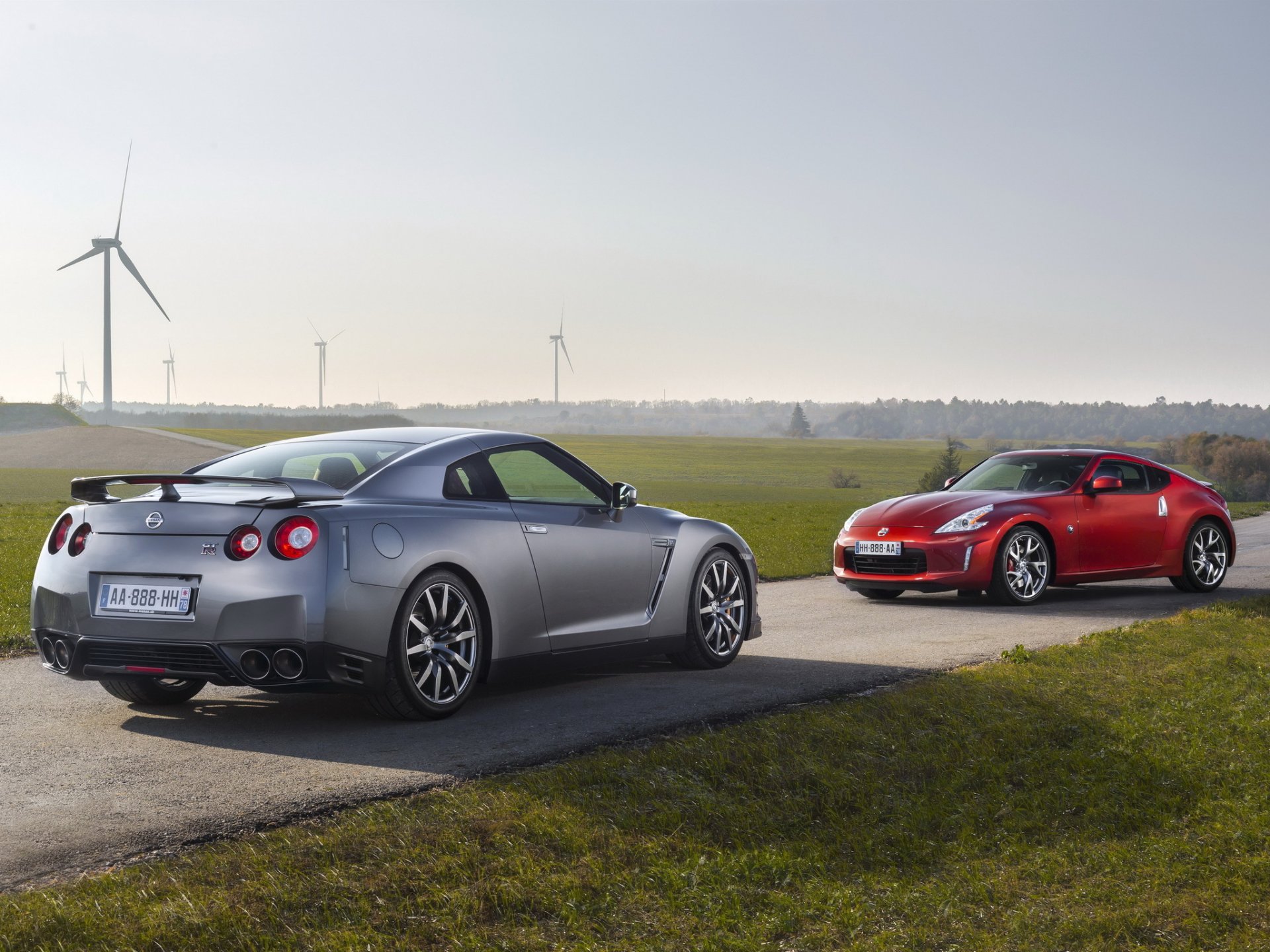 Photo d une voiture Nissan dans la nature sur fond de moulins à vent - fond d'écran de bureau