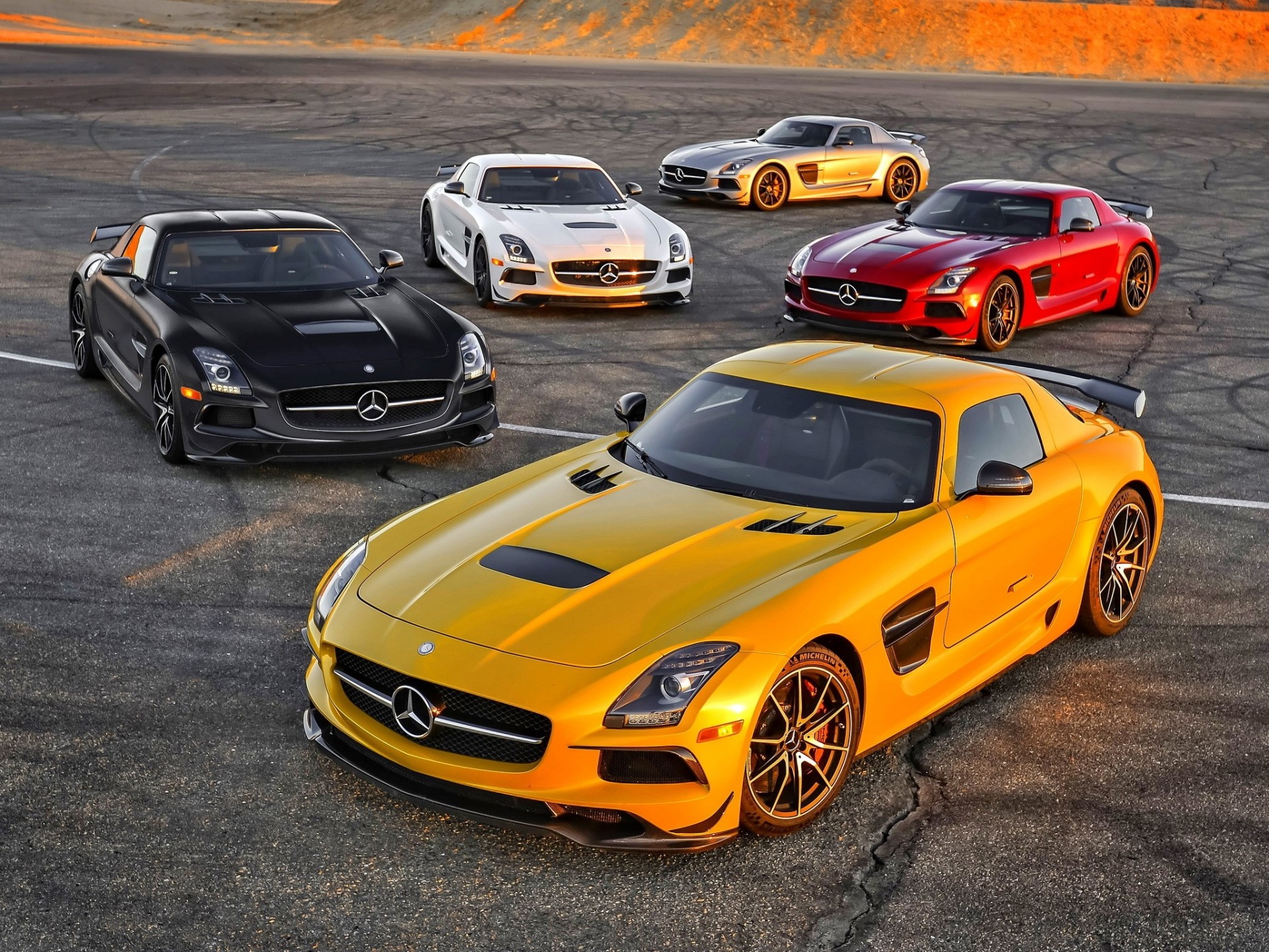 Plusieurs voitures mercedes sur la piste - fond d'écran de bureau