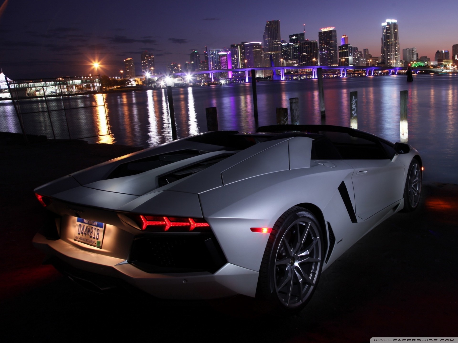 Voiture dans la nuit près de la rivière sur le fond de la ville - fond d'écran de bureau
