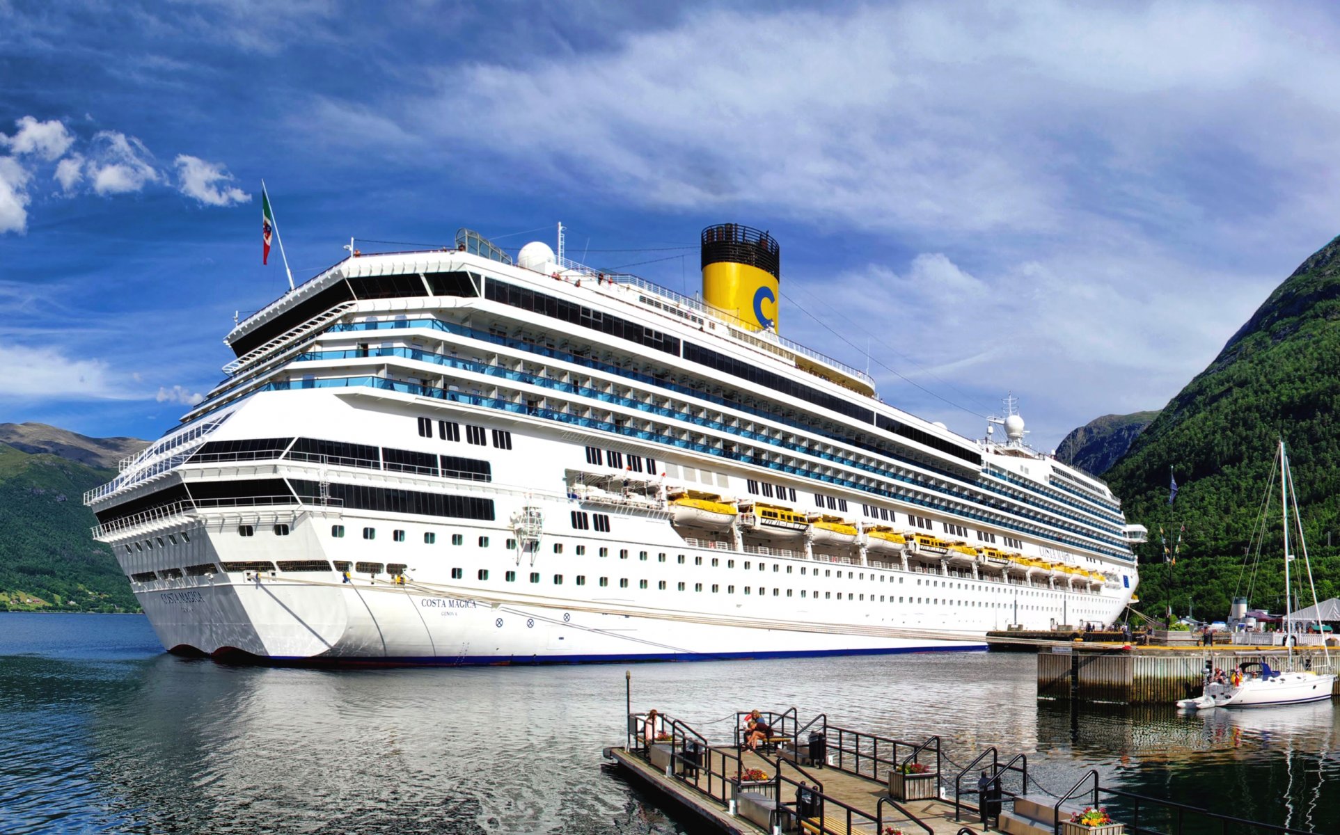 Énorme paquebot dans une belle baie - fond d'écran de téléphone
