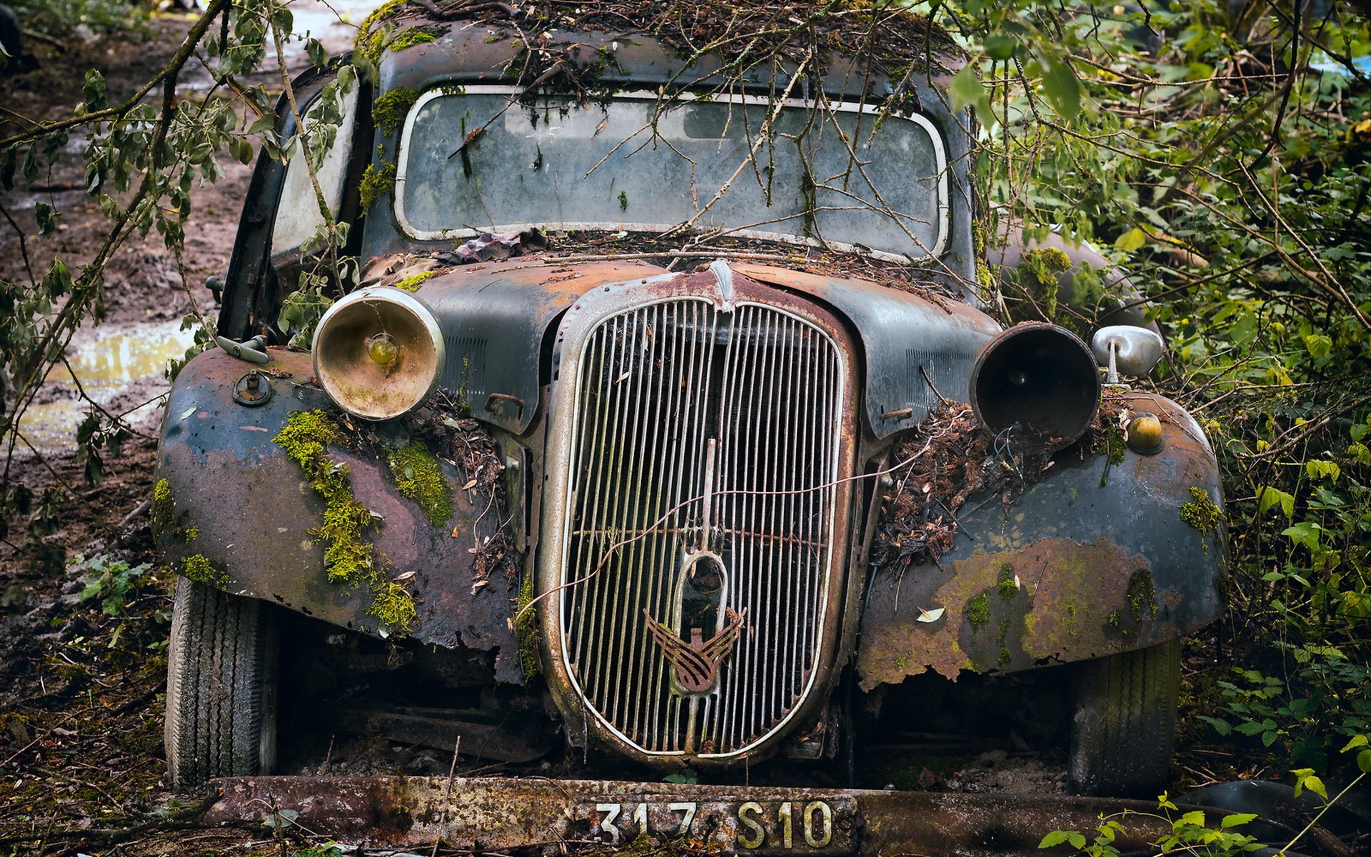 Vieille voiture classique dans les fourrés - fond d'écran de téléphone