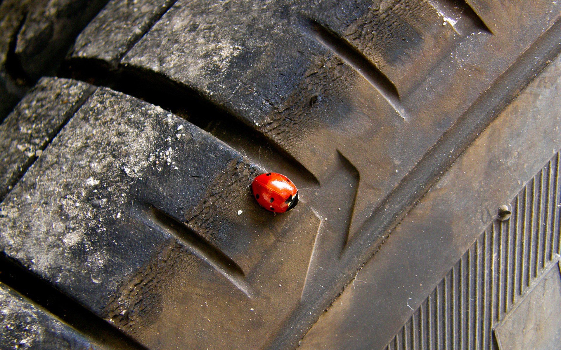 Coccinelle sur roue de voiture - fond d'écran de bureau