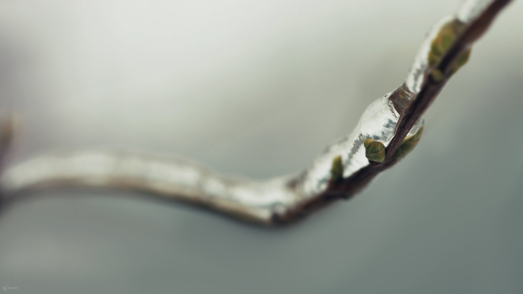 Tags:gros plan, branche, bourgeons, glace, printemps