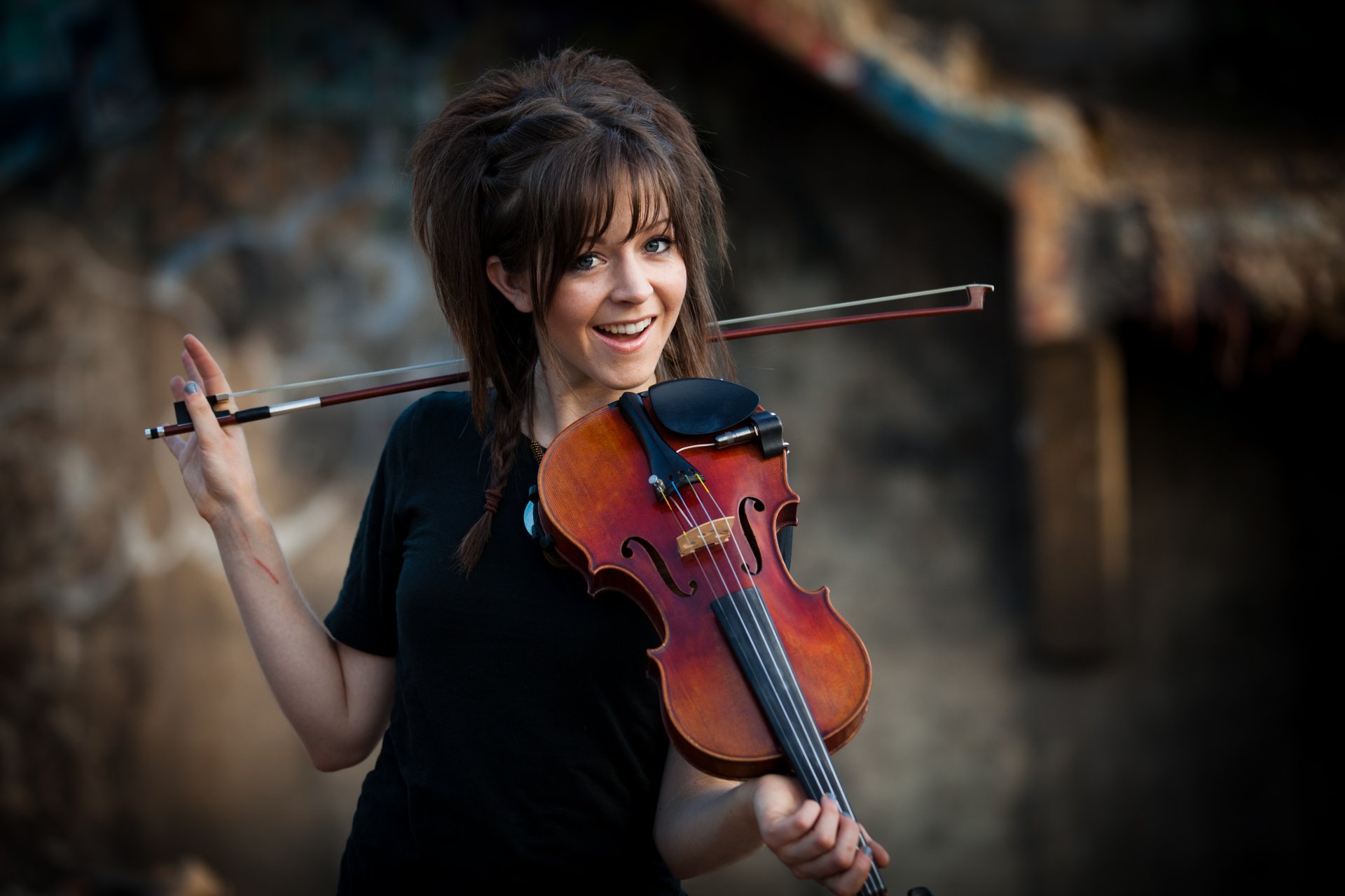 Belle fille en robe noire joue du violon - fond d'écran de bureau