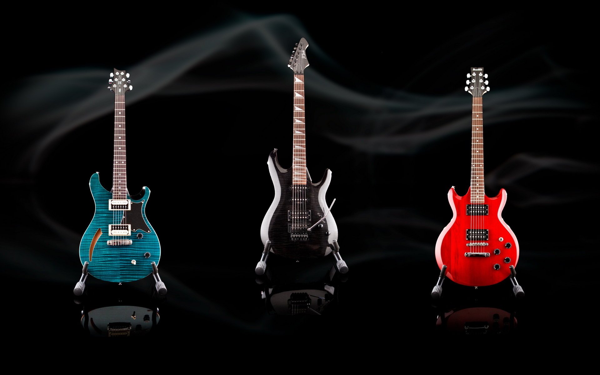 Guitares lumineuses sur fond noir - fond d'écran de bureau