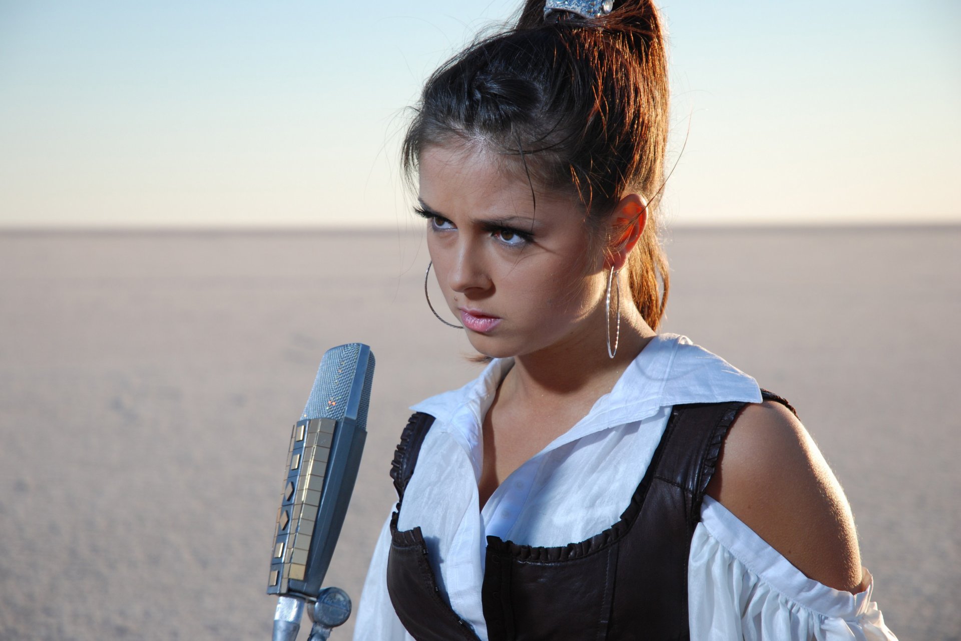 Chanteur Nyusha avec Micro dans le désert - fond d'écran de téléphone