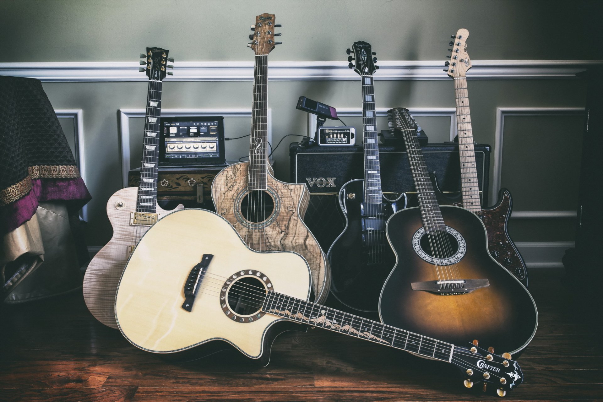 Les guitares se dressent sur fond de Combes - fond d'écran de téléphone