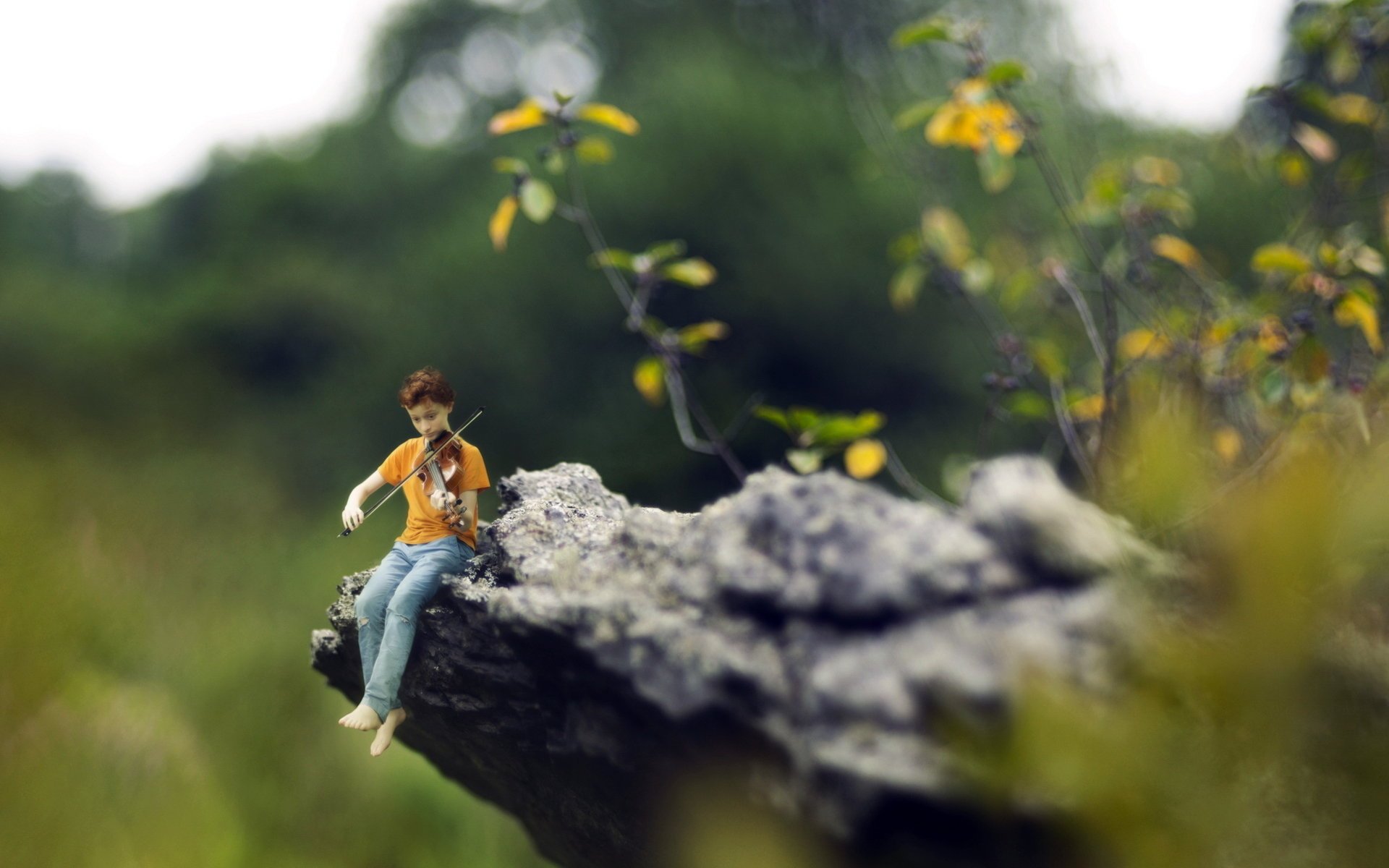 Petit garçon jouant du violon - fond d'écran de téléphone