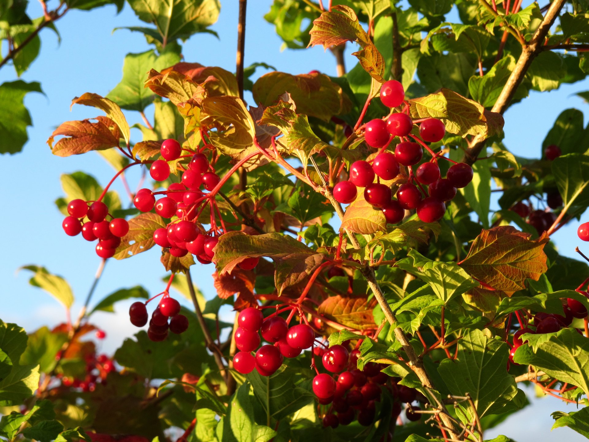Baies rouges Viburnum en automne - fond d'écran de bureau