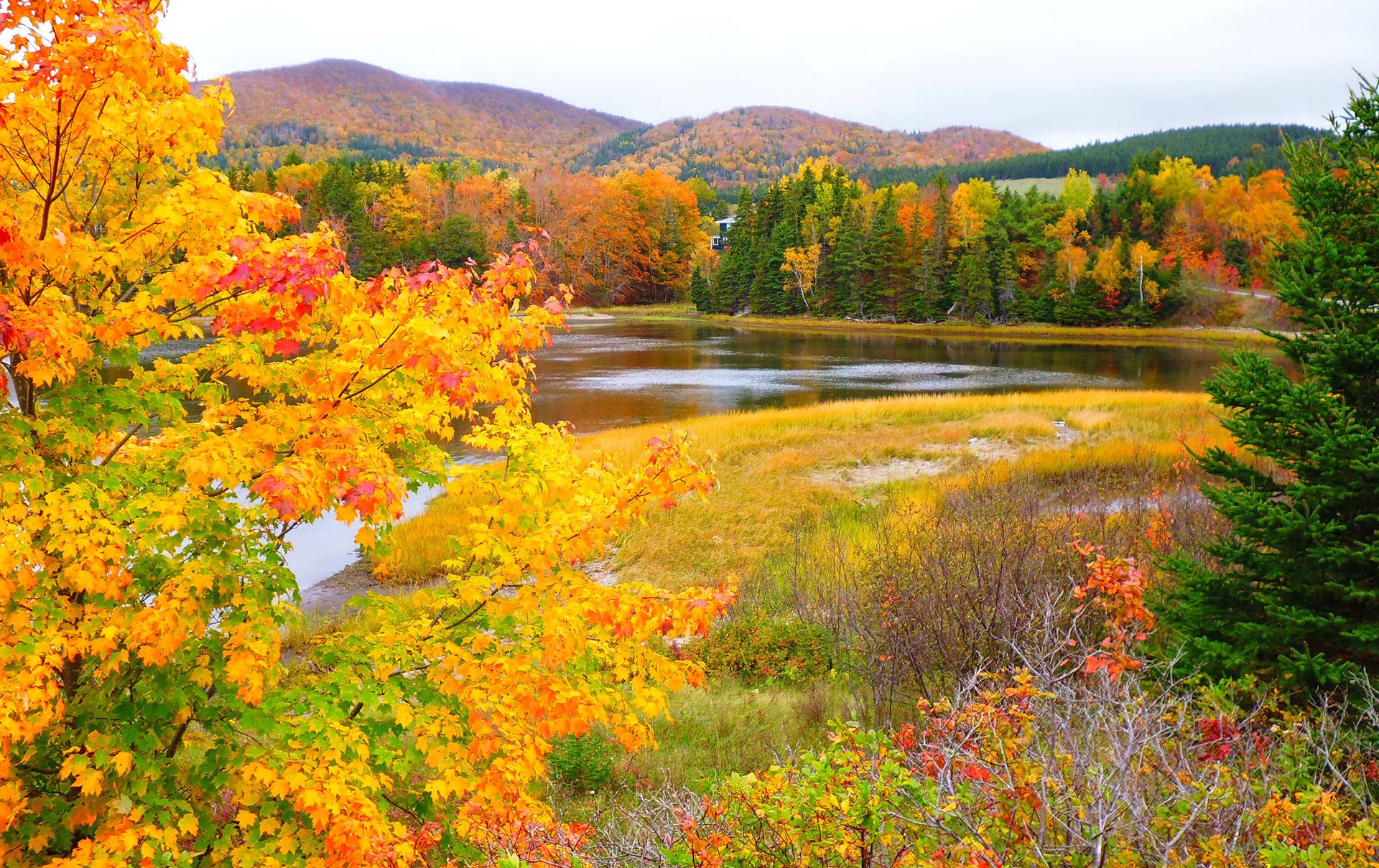 Tags:ciel, montagnes, forêt, rivière, feuilles, arbres, automne
