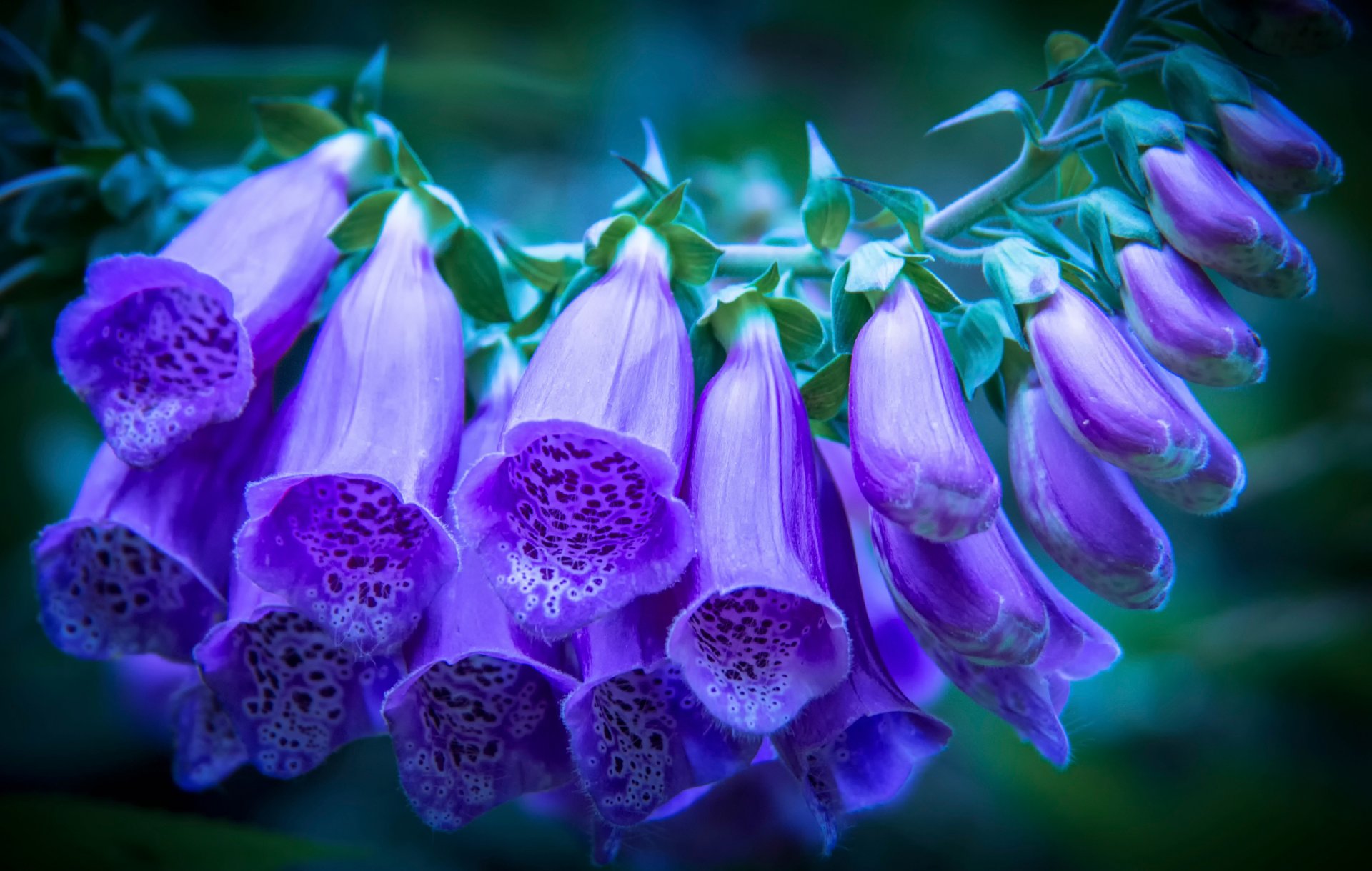 Bourgeons pourpres de digitale sur fond vert - fond d'écran de bureau