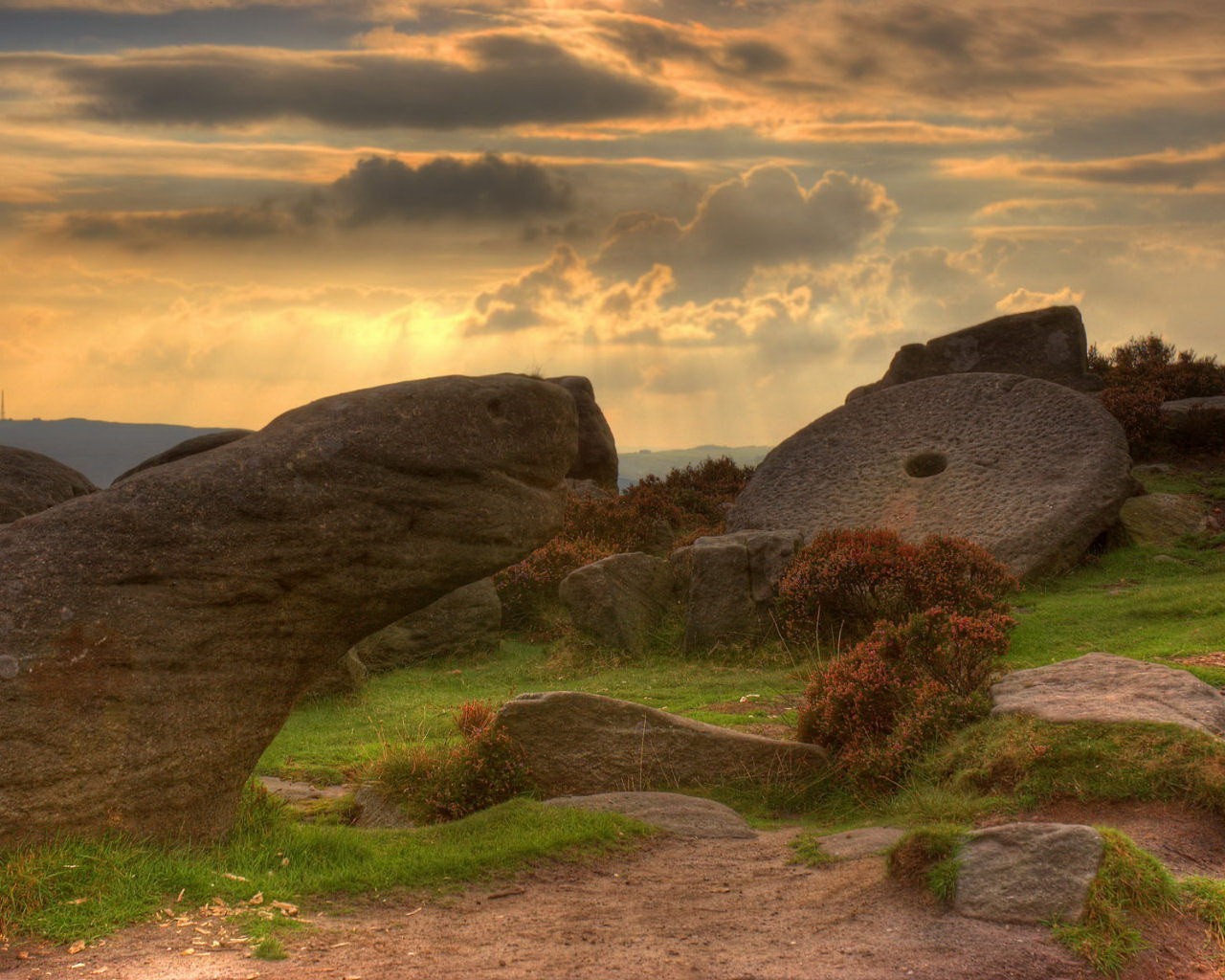Clairière rocheuse avec ruines - fond d'écran de bureau