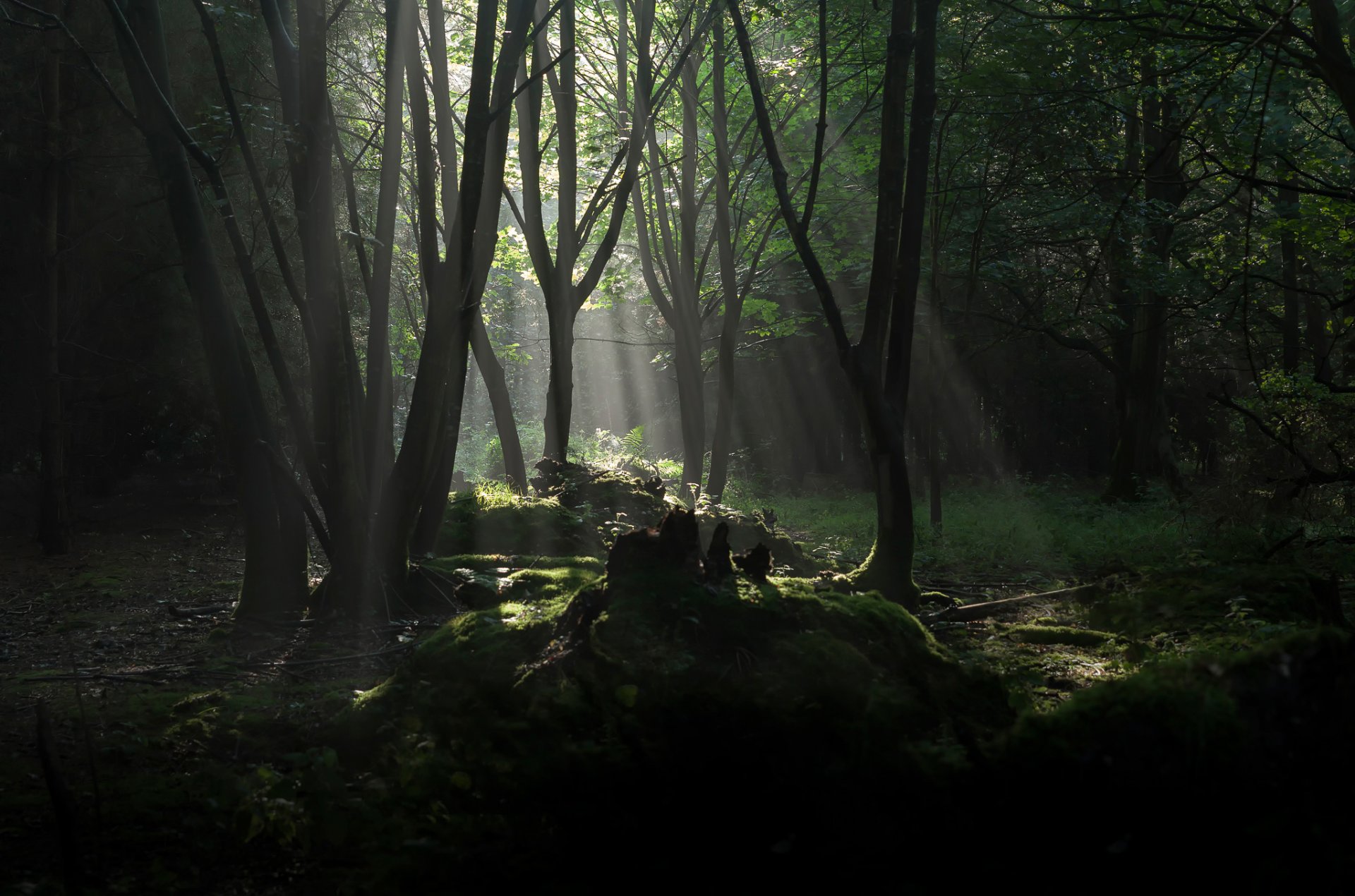 La forêt sombre sera frappée par les rayons du soleil - fond d'écran de bureau