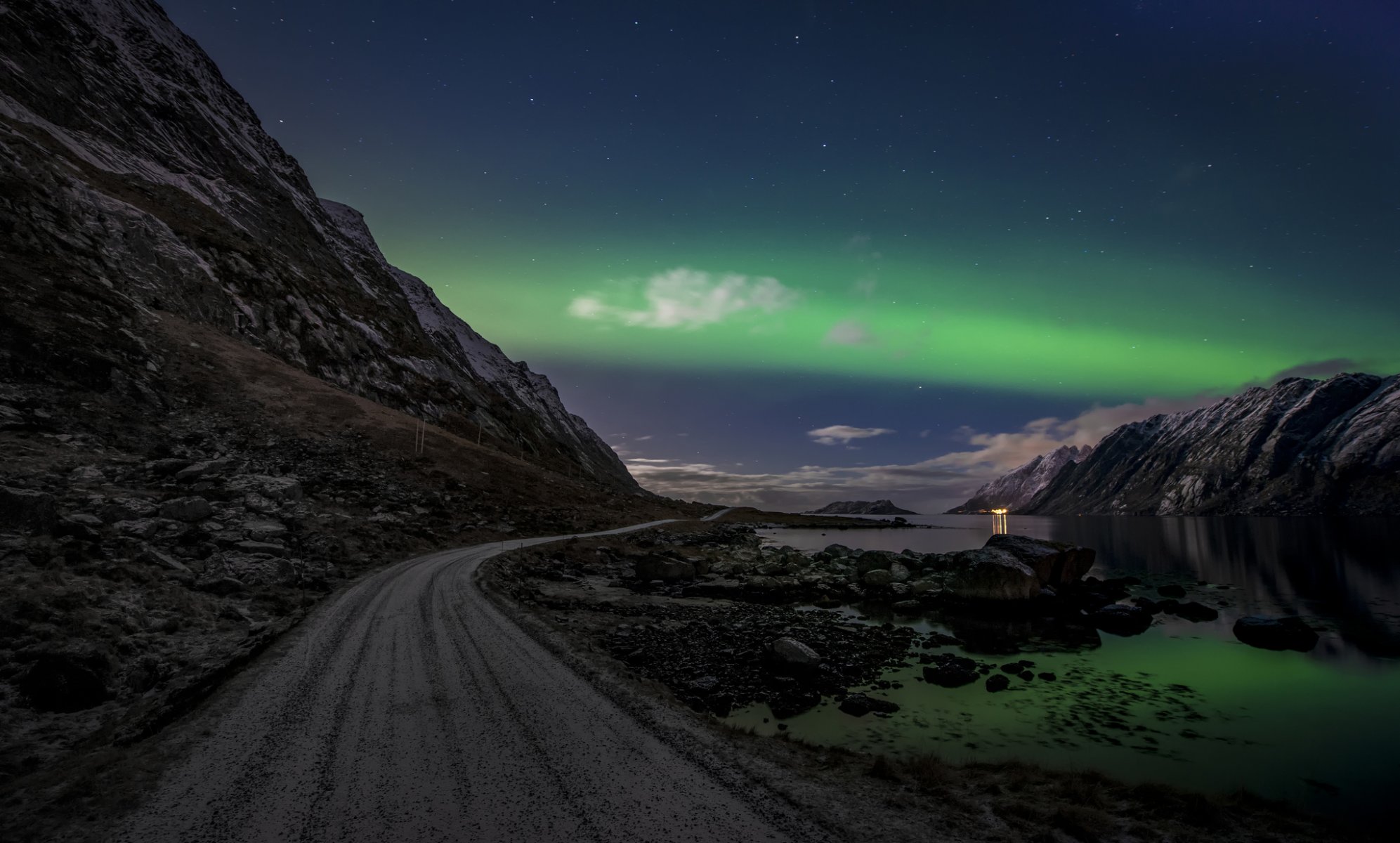 Tags:îles lofoten, norvège, aurores boréales, roches, route, nuit, ciel, nuages