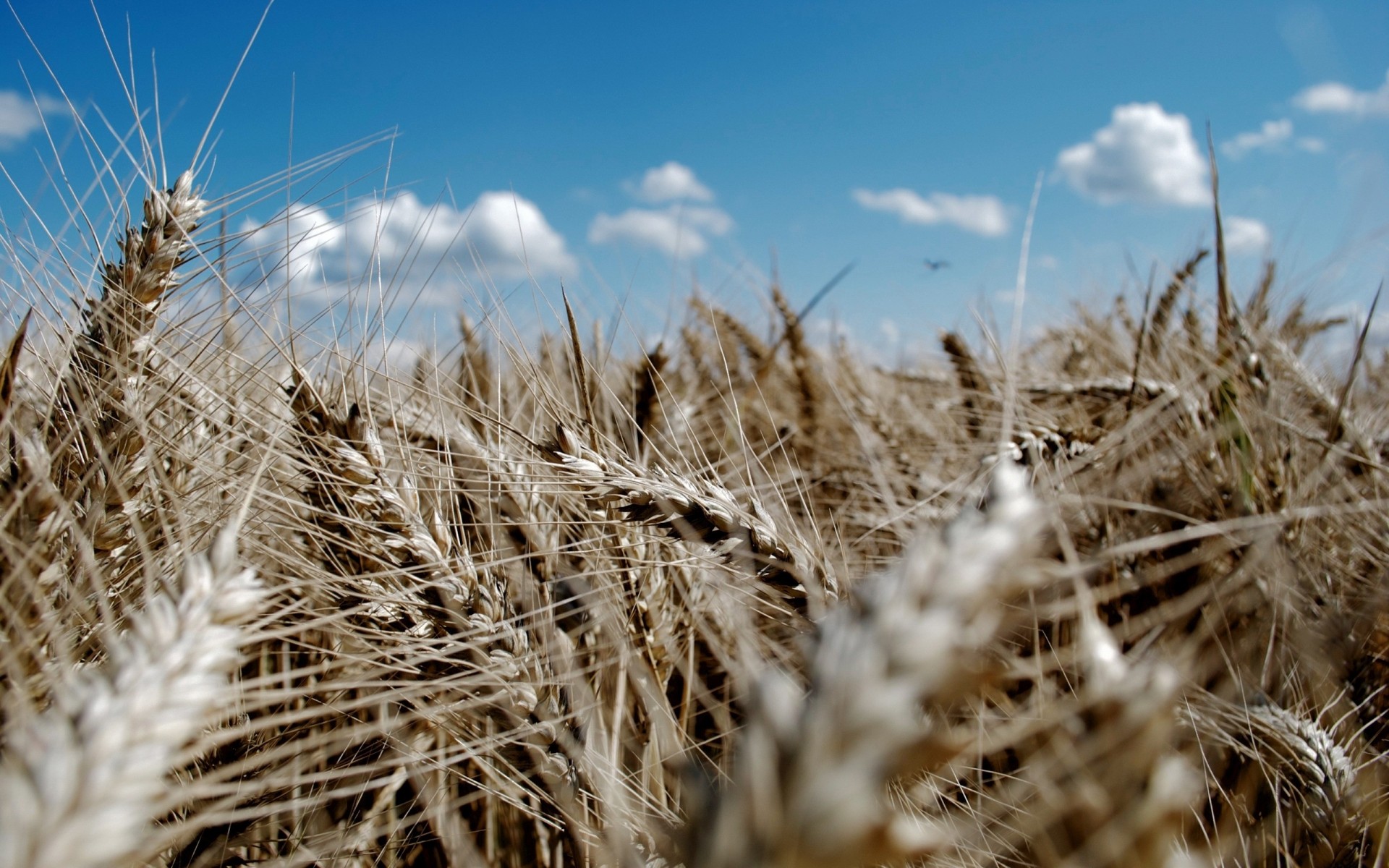 Les champs de blé indigènes en bleu - fond d'écran de bureau