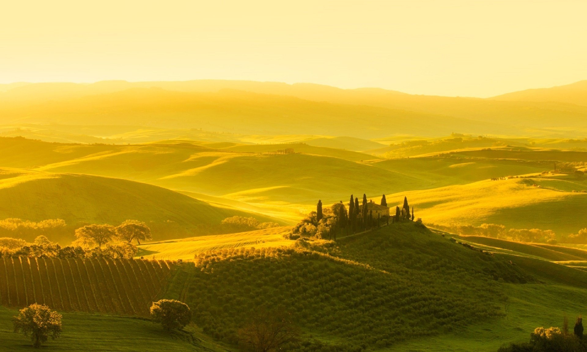 Tags:collines ensoleillées, maison, verdure, lumière