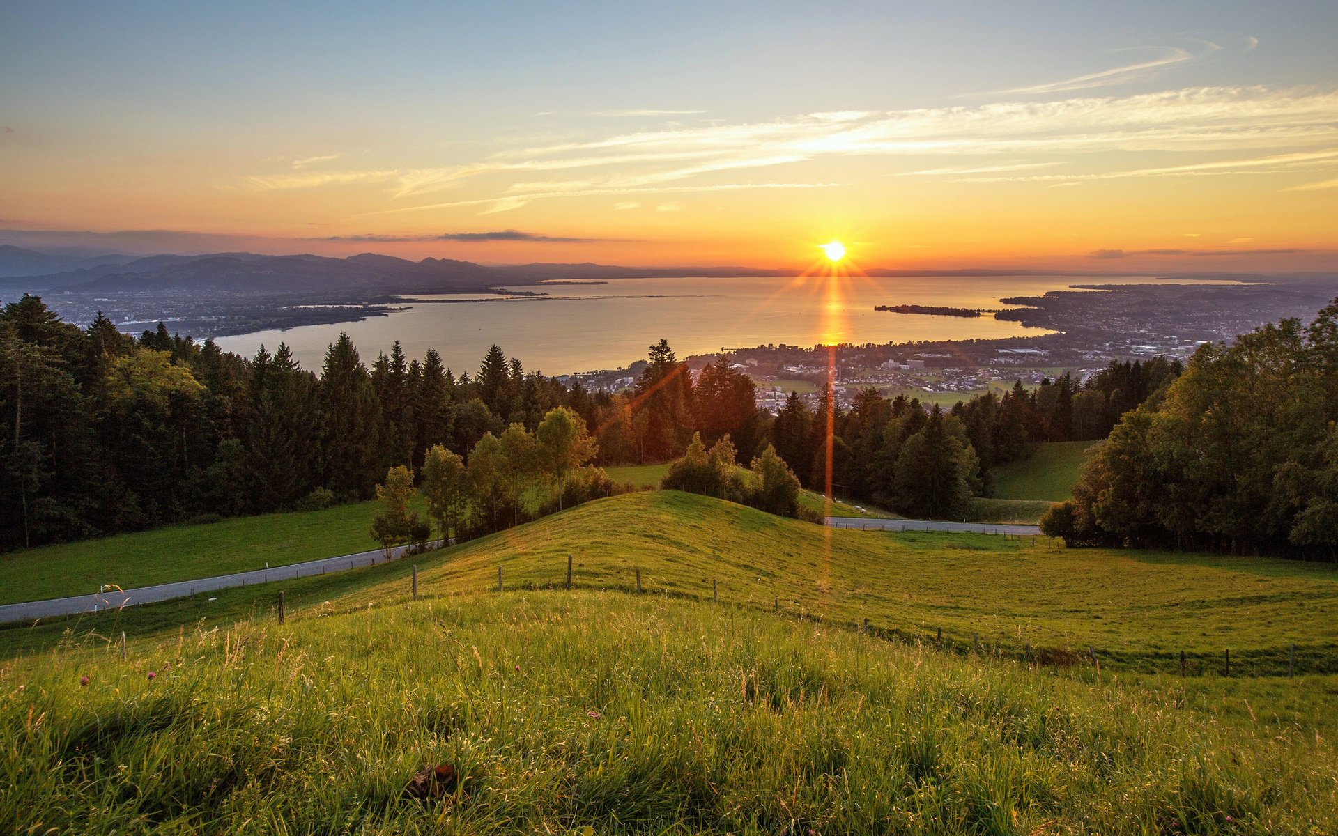 Tags:soleil, paysage, herbe, ciel, route, verdure