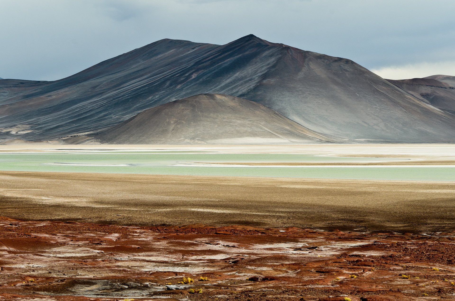 Rivière bleue sur fond de montagnes grises - fond d'écran de bureau