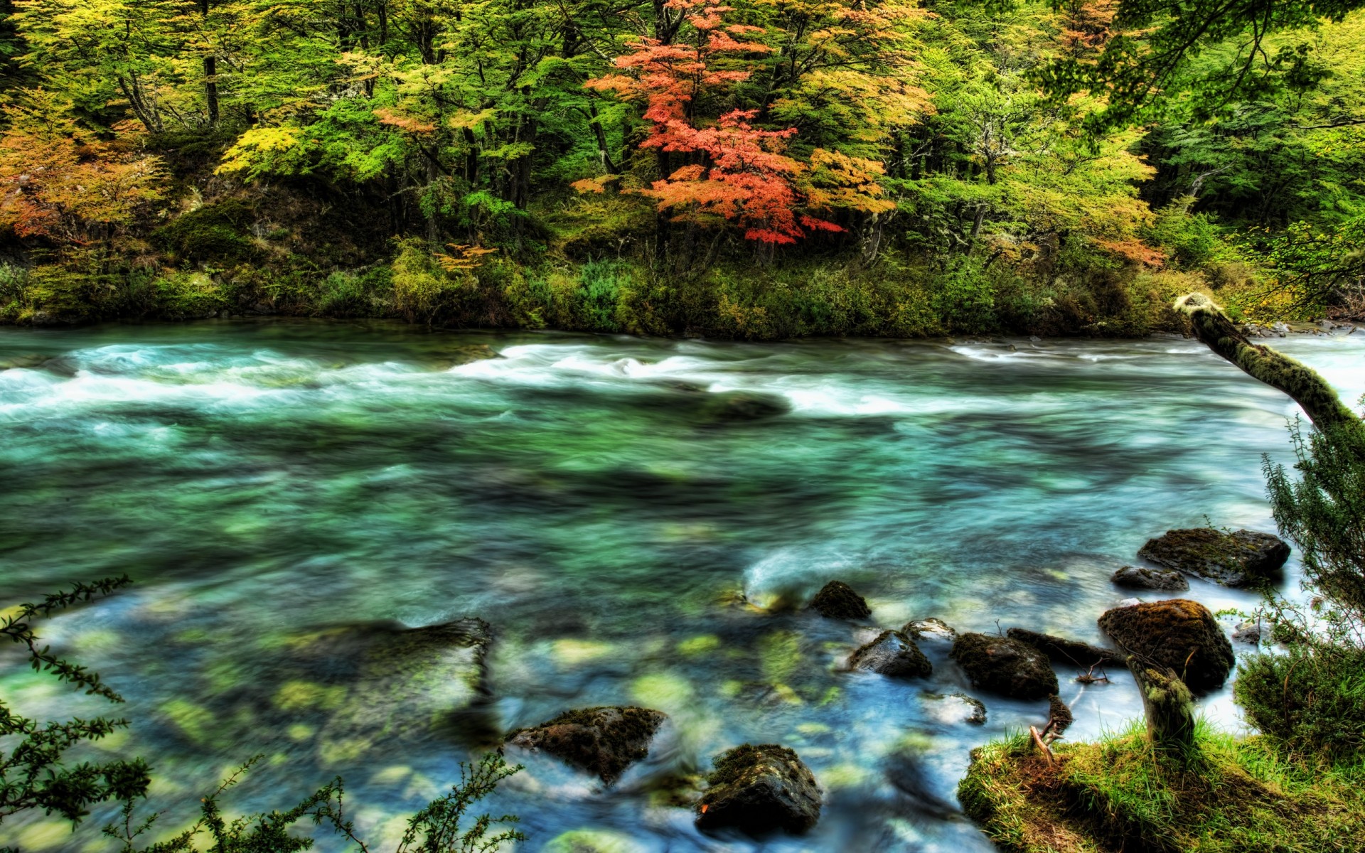 Tags:rivière, vagues, pierres, arbres, sauvage